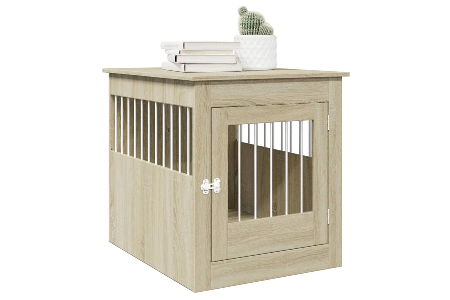 This dog crate furniture, serving as both a dog cage and an end table, makes a practical and eye-catching addition to your living room.