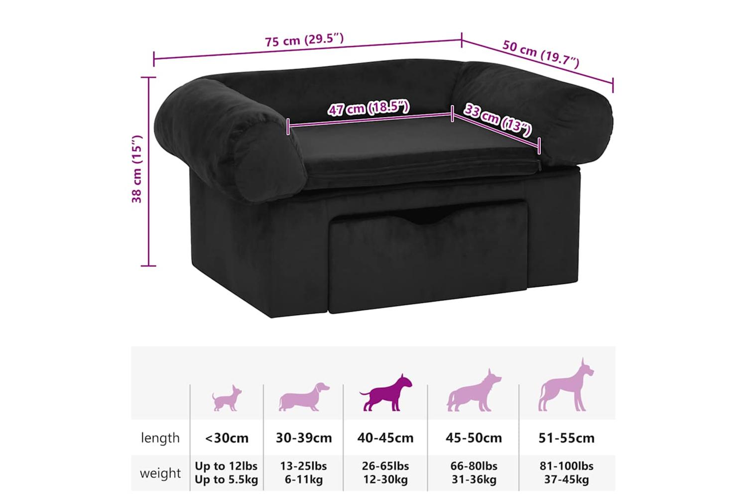 This dog sofa with a storage drawer allows your pet to have its own space in your living room or bedroom. It can also be used for cats and other small animals.