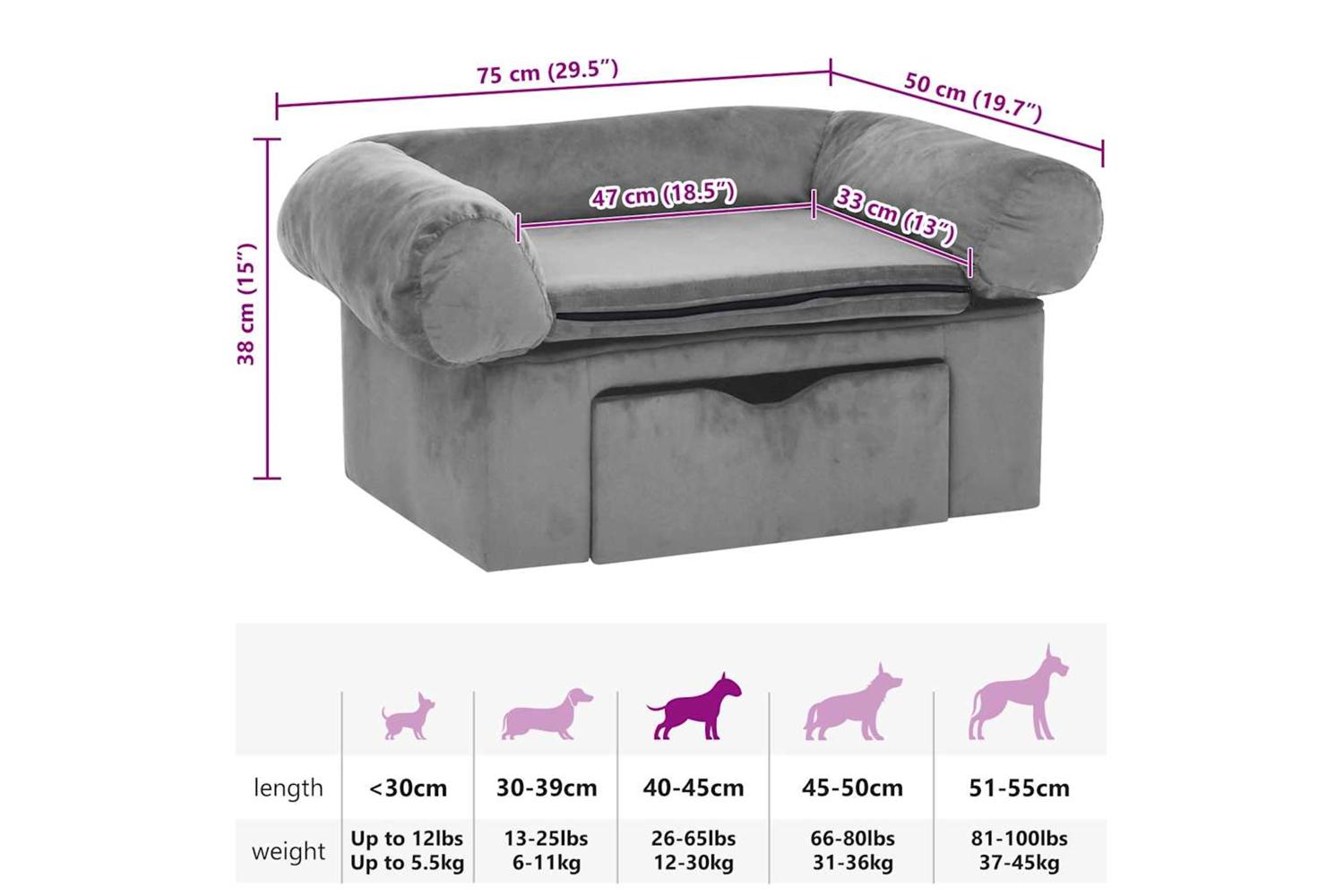 This dog sofa with a storage drawer allows your pet to have its own space in your living room or bedroom. It can also be used for cats and other small animals.