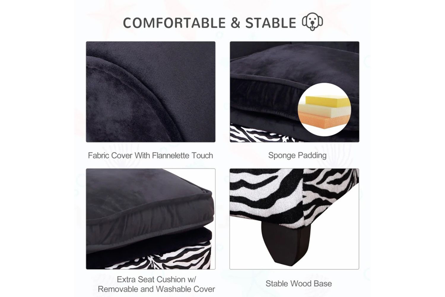 This PawHut pet sofa bed provides the optimum resting place for your beloved little friends. Added comfort for the pets, thanks to soft flannelette covering and soft sponge filling. The cushion cover is washable to maintain freshness. Above all the pet lounger comes with storage option for keeping all the essentials