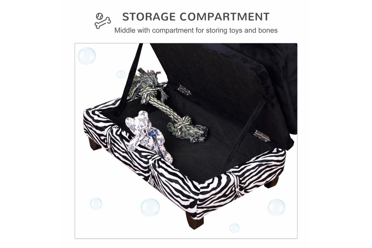 - Storage box under the seat to store essential pet items