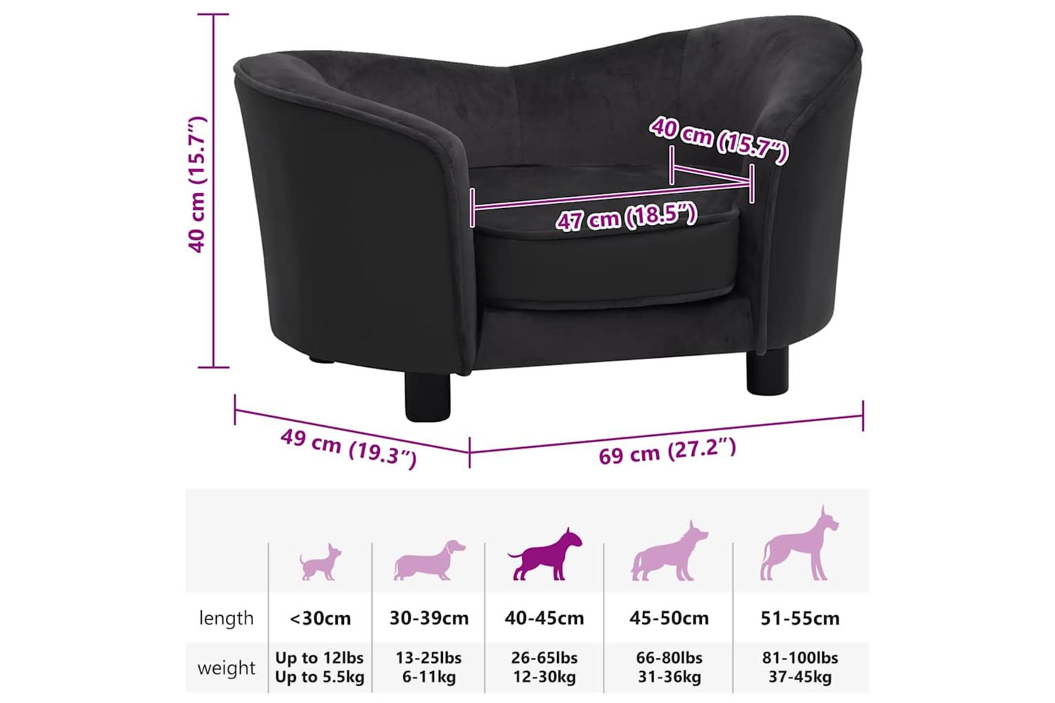 - Required pet length: Less than 40 cm