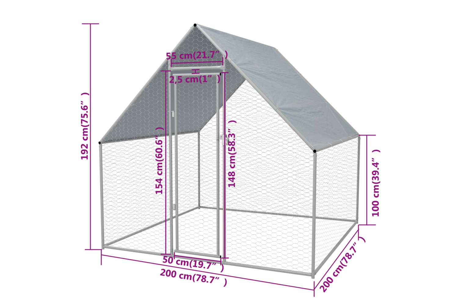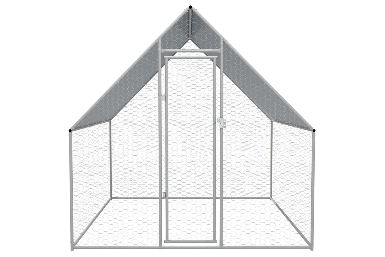 This chicken run is made of high-quality galvanised steel for durability and has a 100% polyethylene roof that is water resistant and UV resistant, providing protection from sun, rain, snow and other weather conditions. The gate is equipped with a lock. Assembly is easy.