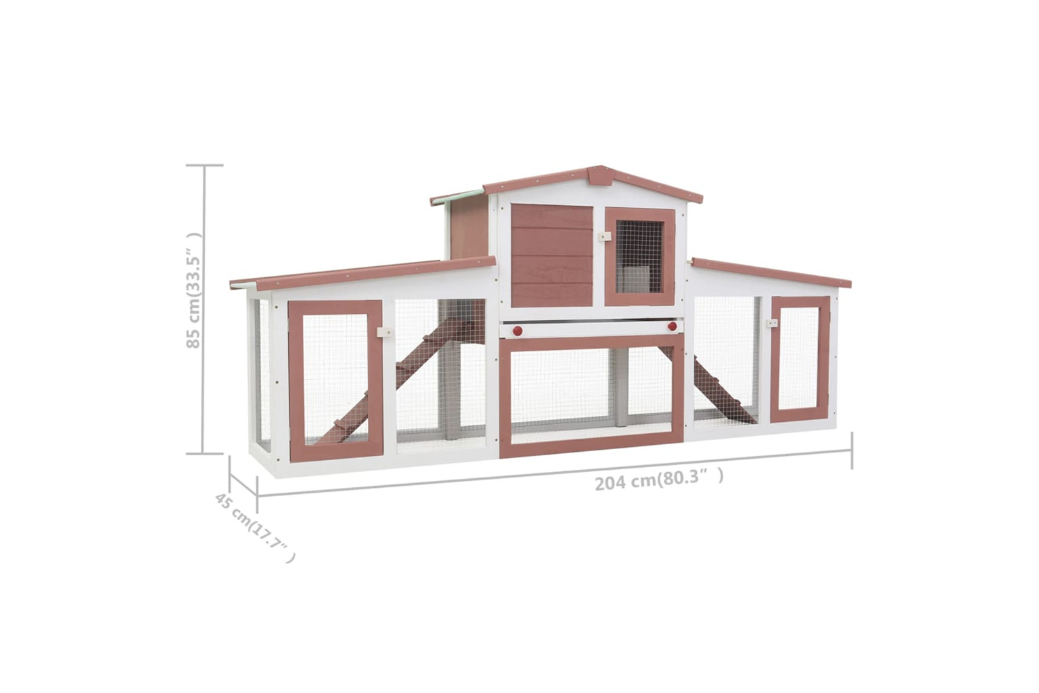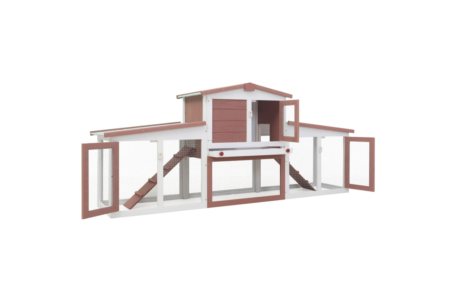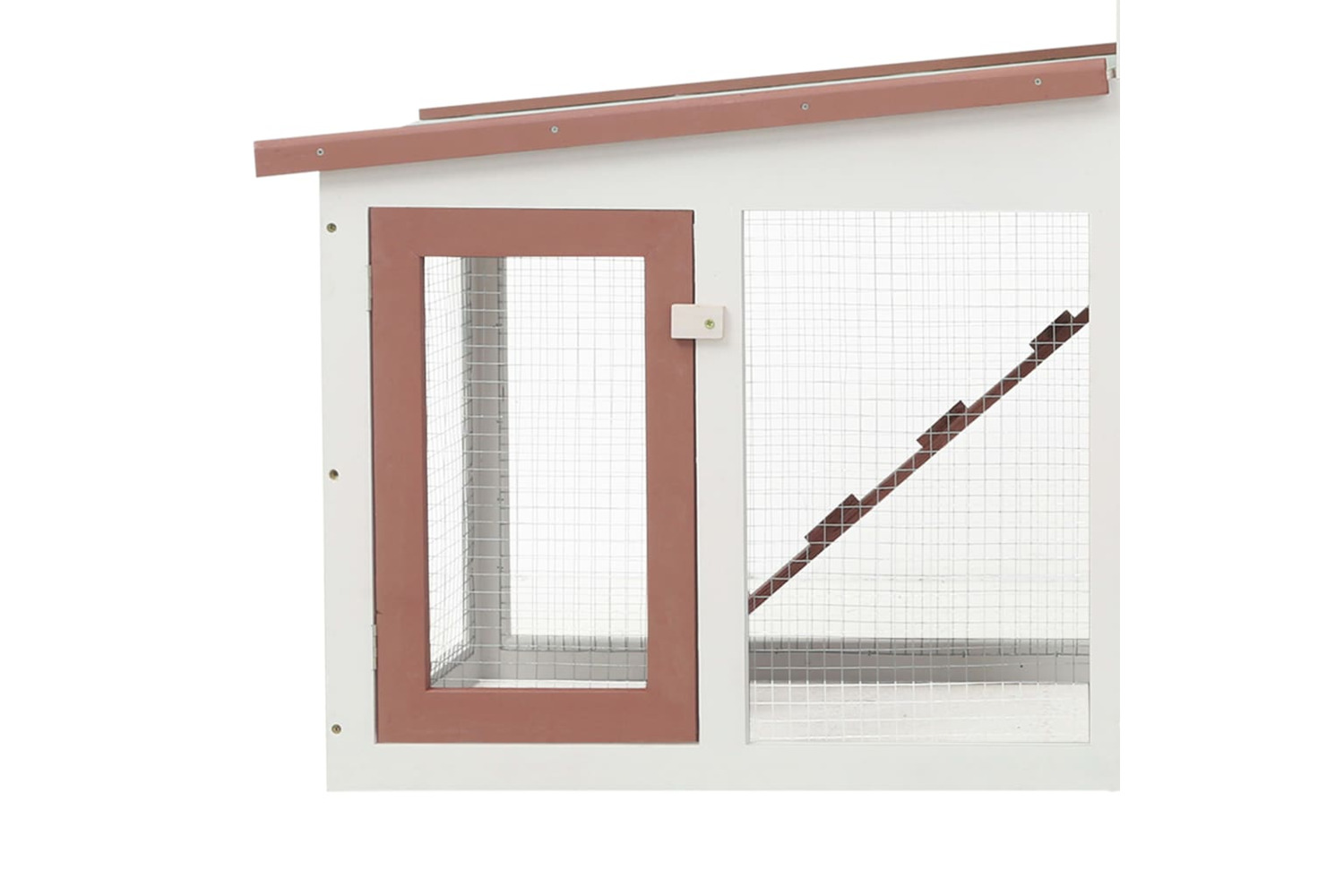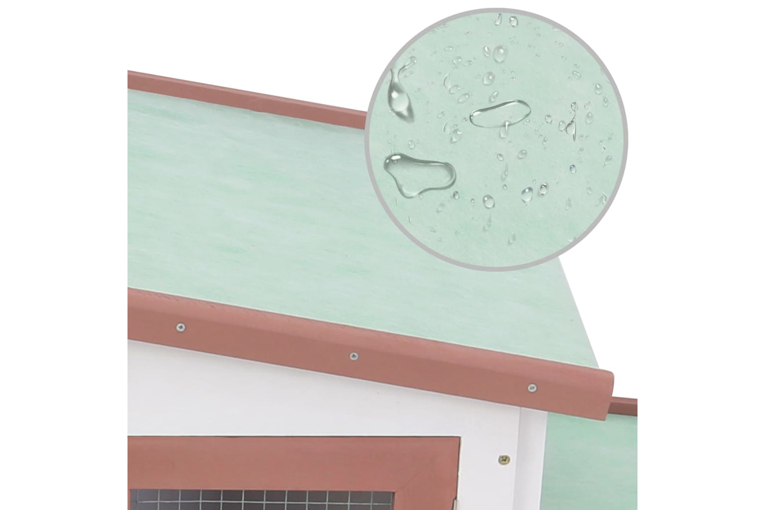 It is built with solid painted fir wood that is long-lasting and safe for animals. An asphalt roof keeps your furry friends away from outside weather elements. Raised perch keeps your small animals safe, dry and warm, especially on rainy days. Both sides are equipped with the ramp, so your pet can easily enter the raised housing area. Designed for simple maintenance, it contains a removable dropping tray for easy cleaning. The outdoor run with durable fencing wiring ensures sufficient ventilation and keeps pet in and predators out. Lockable doors protect your pets and allow you to easily take them in and out.