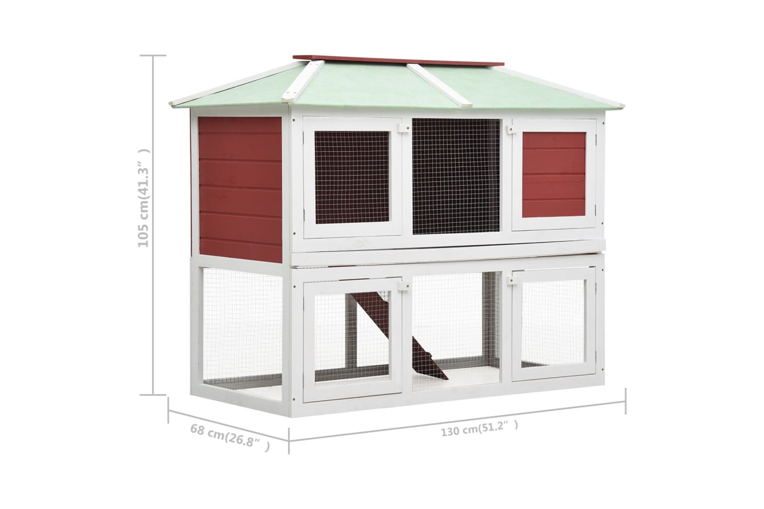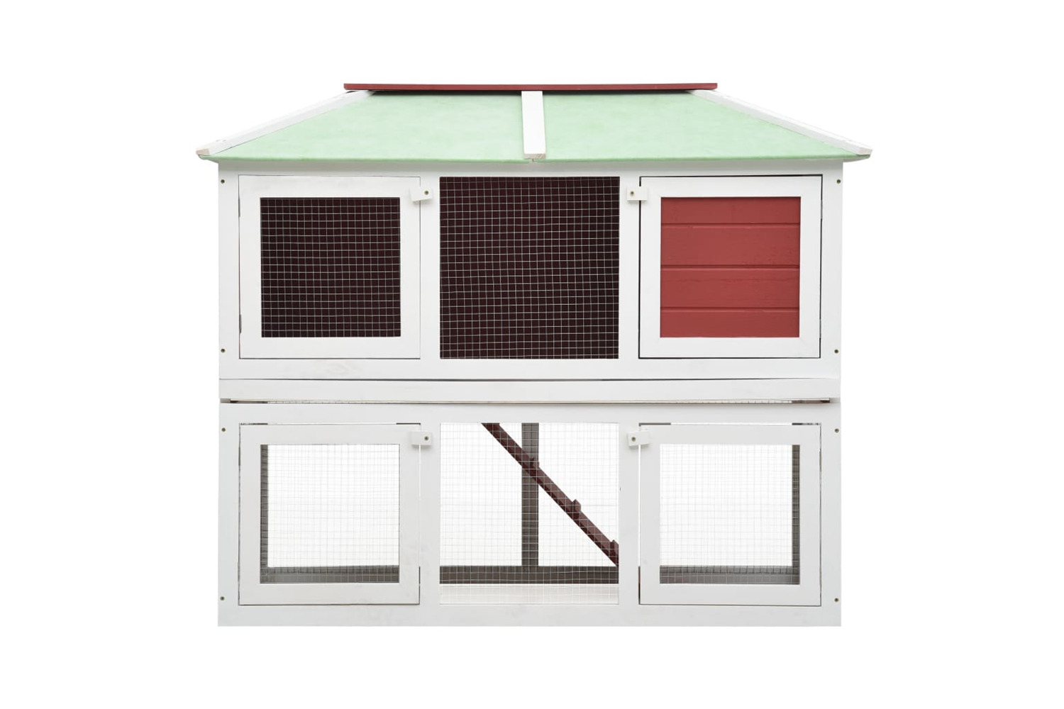This high-quality hutch of 2 layers provides a large cozy place for keeping cute rabbits and chicken. It features multiple uses: playing, exercising or training.
