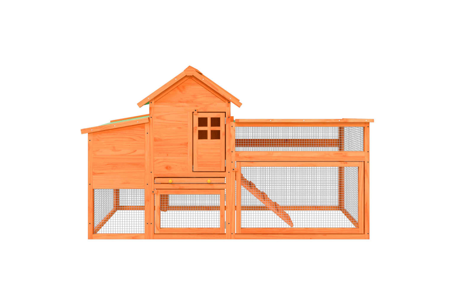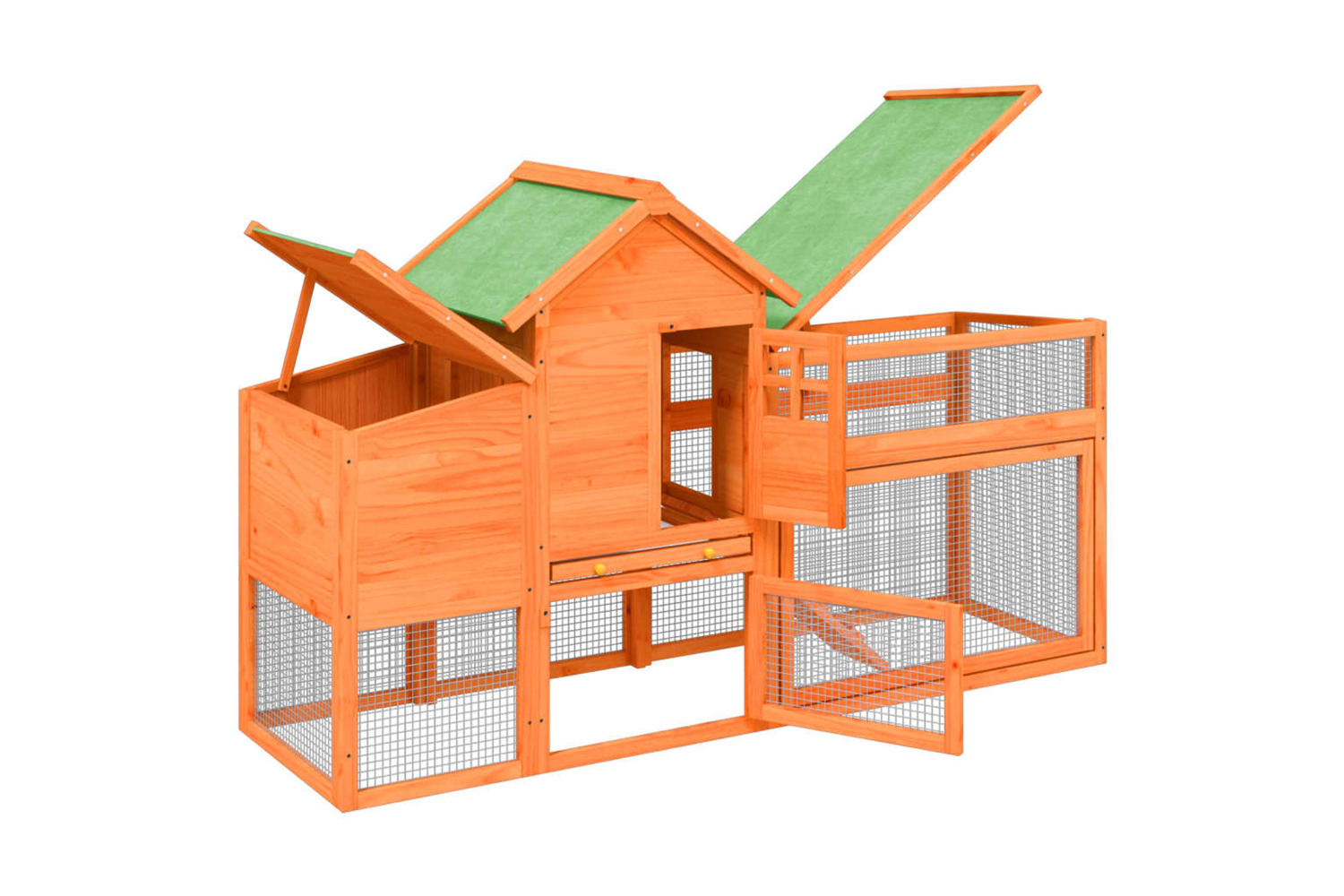 The wooden chicken coop provides a cosy and comfortable place for keeping small animals, especially chickens, to relax.
