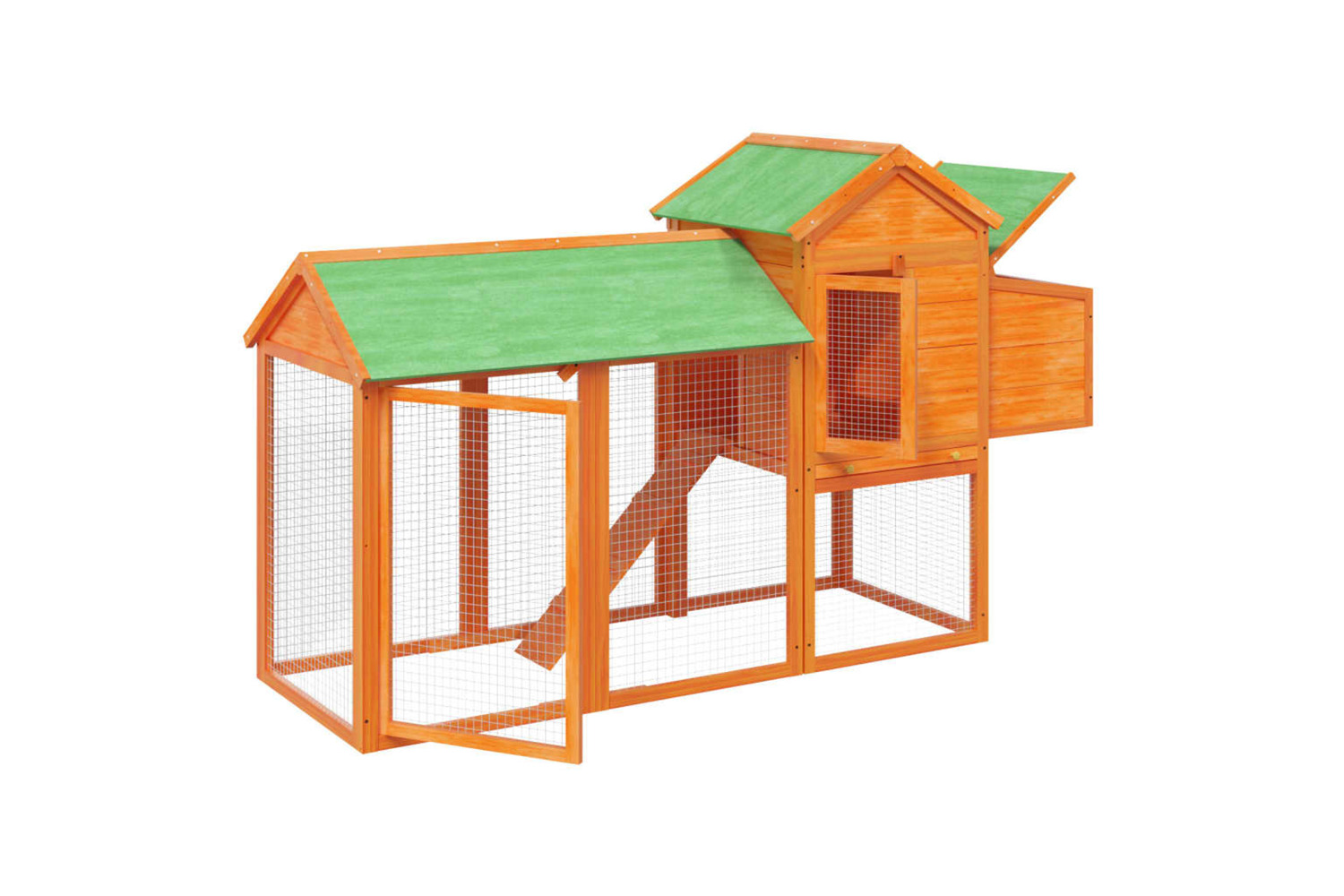 - All-in-one chicken run: Including a large nesting box, resting area and run ramp, the chicken cage always provides enough space for free activities for chickens.