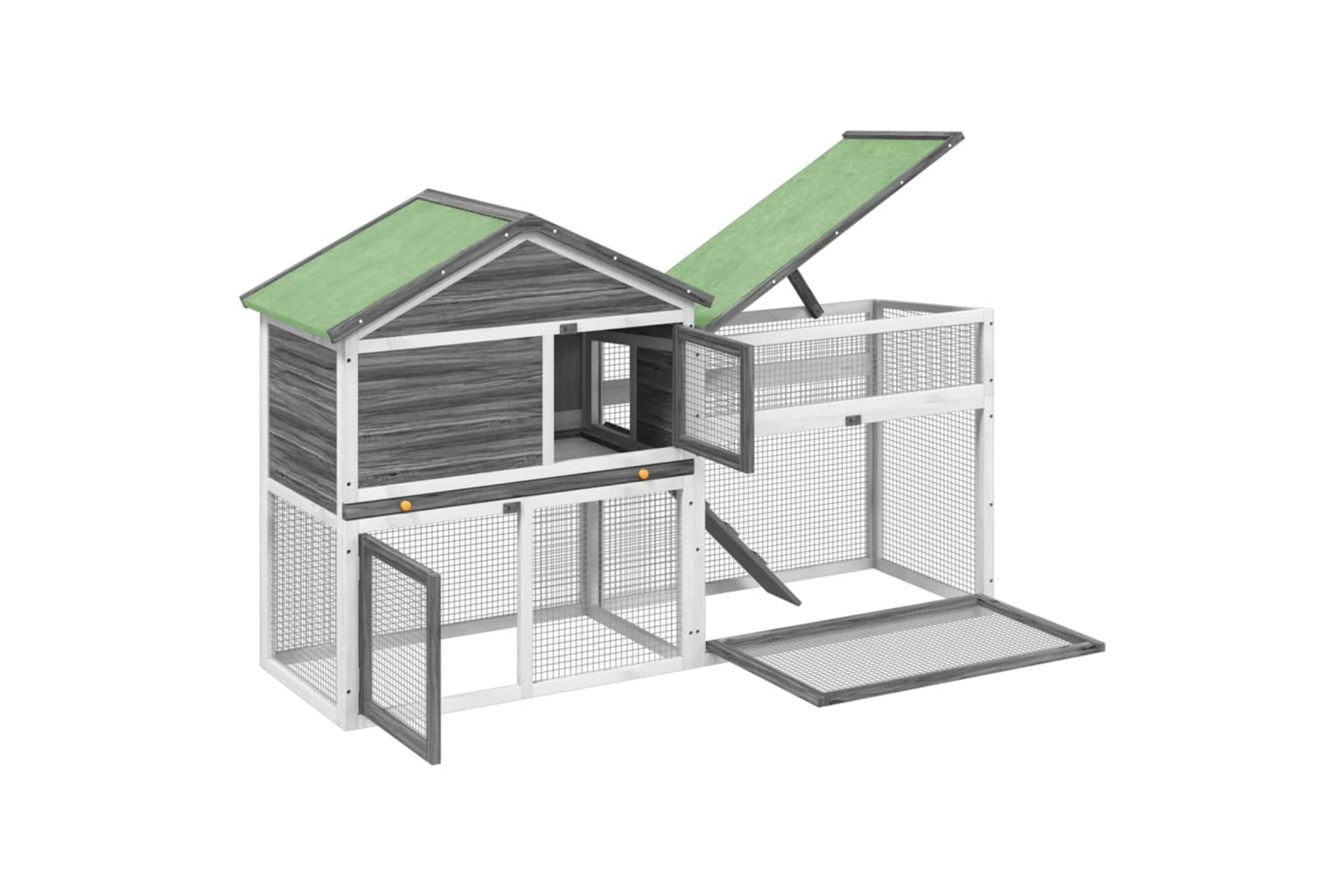 - Muti-level activity centre: 2-tier design with a raised nesting box and a spacious run area, the rabbit house offers ample space for your small pets to play and roam around freely. Designed with a ramp, your furry friends can easily access the upper resting house and the lower activity area.