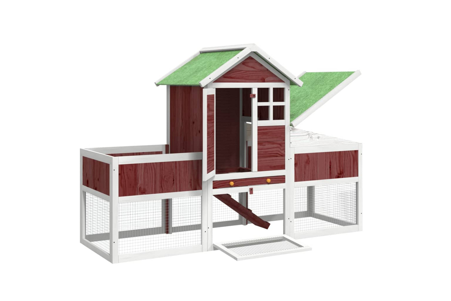 This rabbit hutch with a spacious activity centre and a sleeping area, offers a safe and comfortable place for your furry friends like bunnies, guinea pigs, small ducks, and other small pets to play and rest.