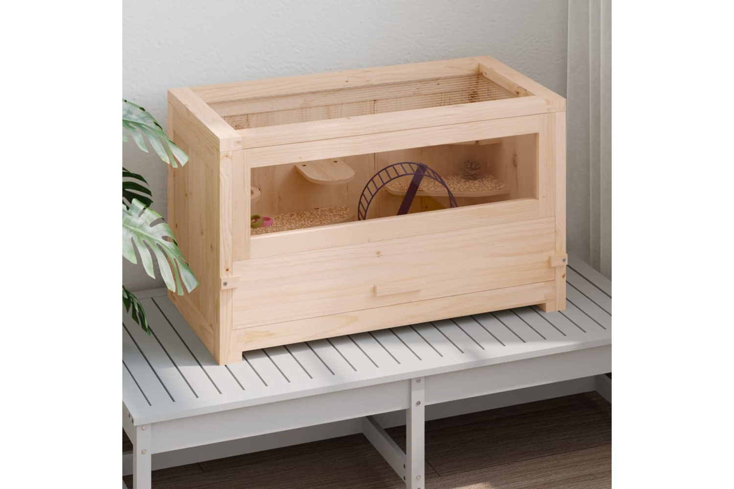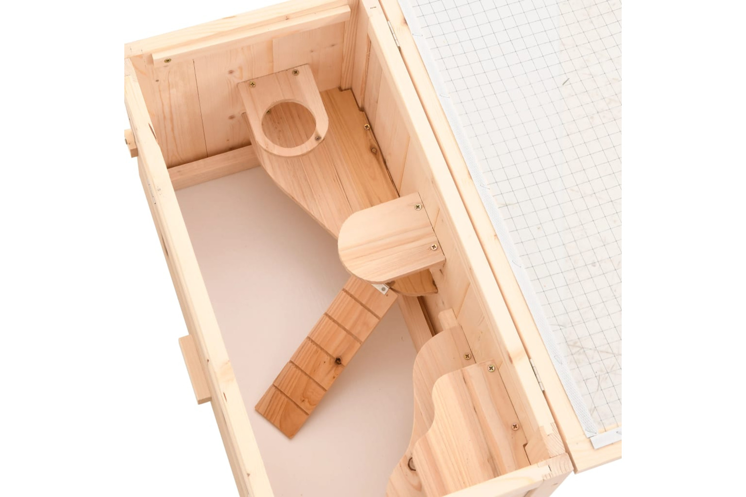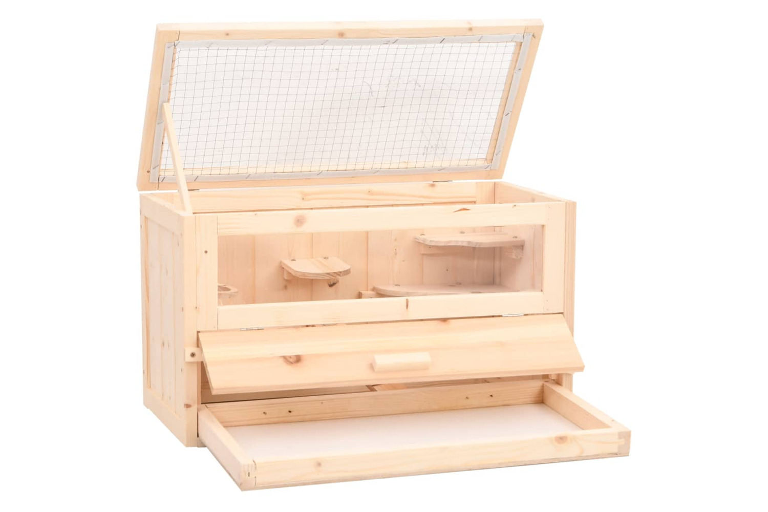 - Solid fir wood: Solid fir wood is a beautiful natural material. Fir wood doesn't dry out or warp when exposed to moisture. Made of solid fir wood, the hamster house is sturdy and easy to clean.