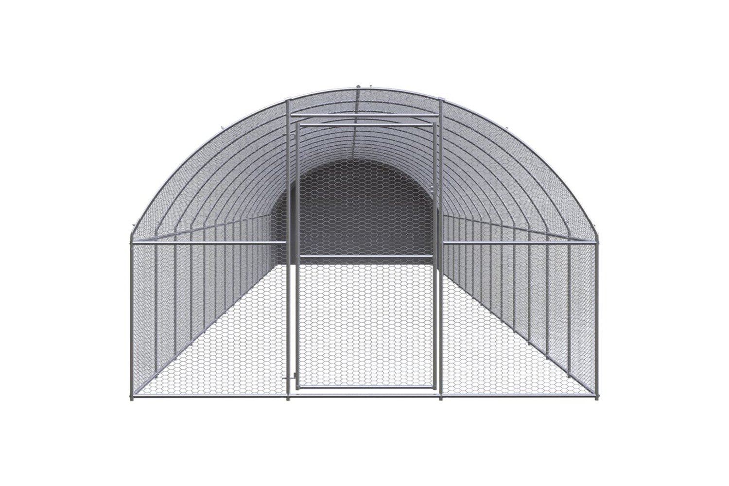 This chicken cage is made of galvanised steel, making the cage stable, durable and easy to clean with a damp cloth or tap water for easy maintenance. It has a polyethylene roof that is water-resistant. The chicken run offers enough space for your poultry. In addition, thanks to the wire mesh, you can keep an eye on your pets at all times.