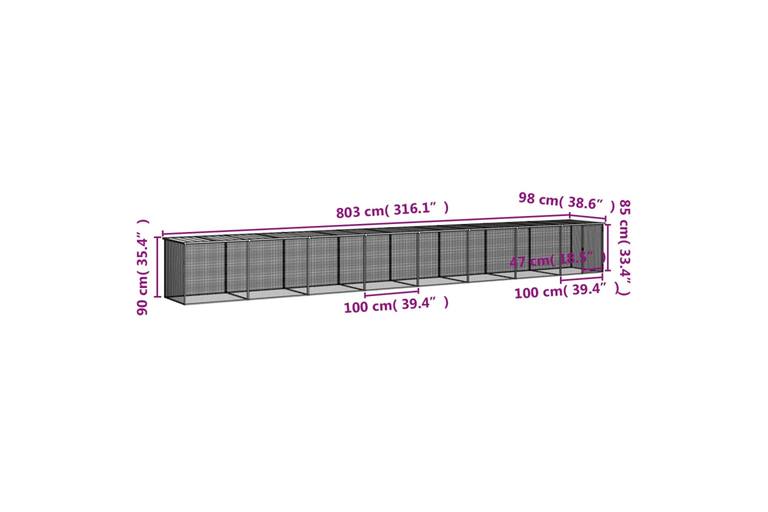 - Overall dimensions: 803 x 98 x 90 cm (L x W x H)