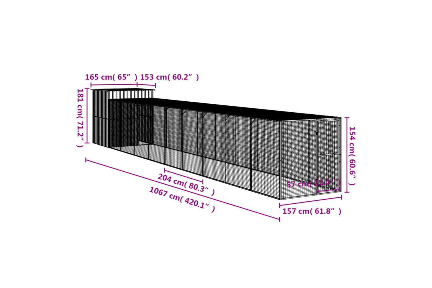 - Outer dimensions: 157 x 919 x 154 cm (W x D x H)