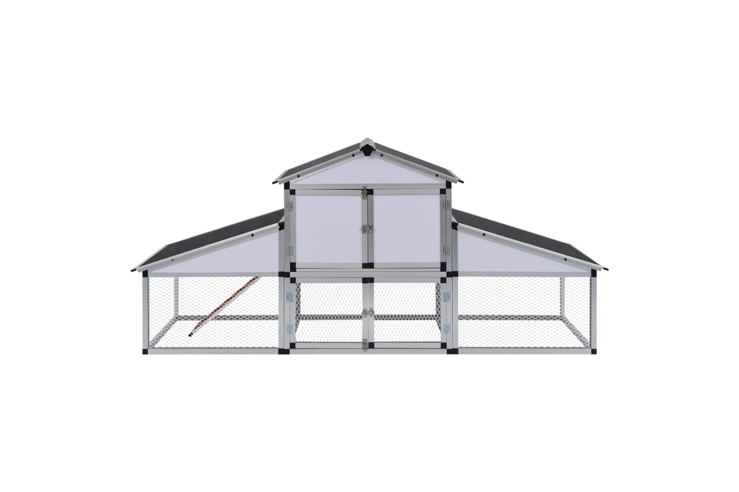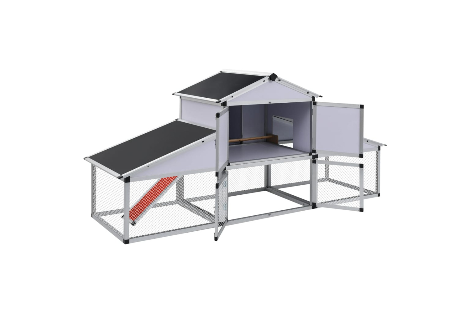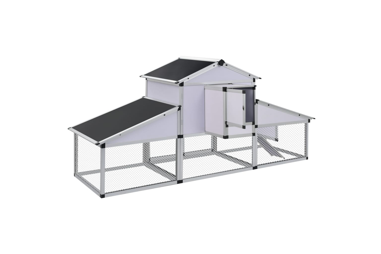 Thanks to the high-quality aluminium construction, the hen house is sturdy and durable. All the roofs can be opened up by unscrewing for light and ventilation.