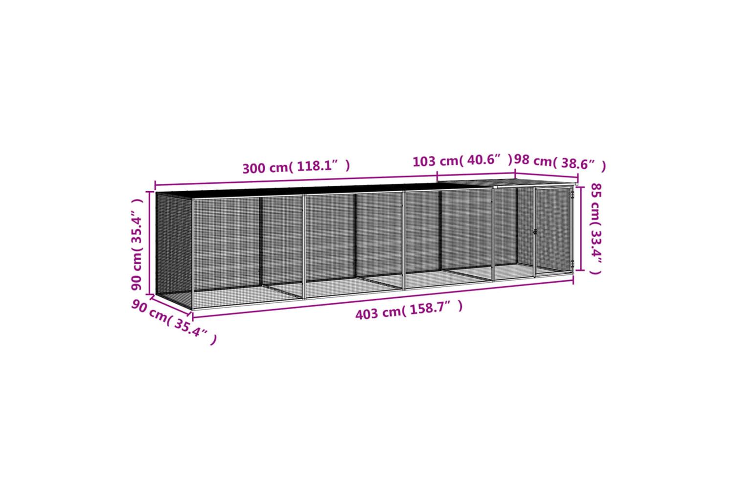 - Overall dimensions: 403 x 98 x 90 cm (L x W x H)