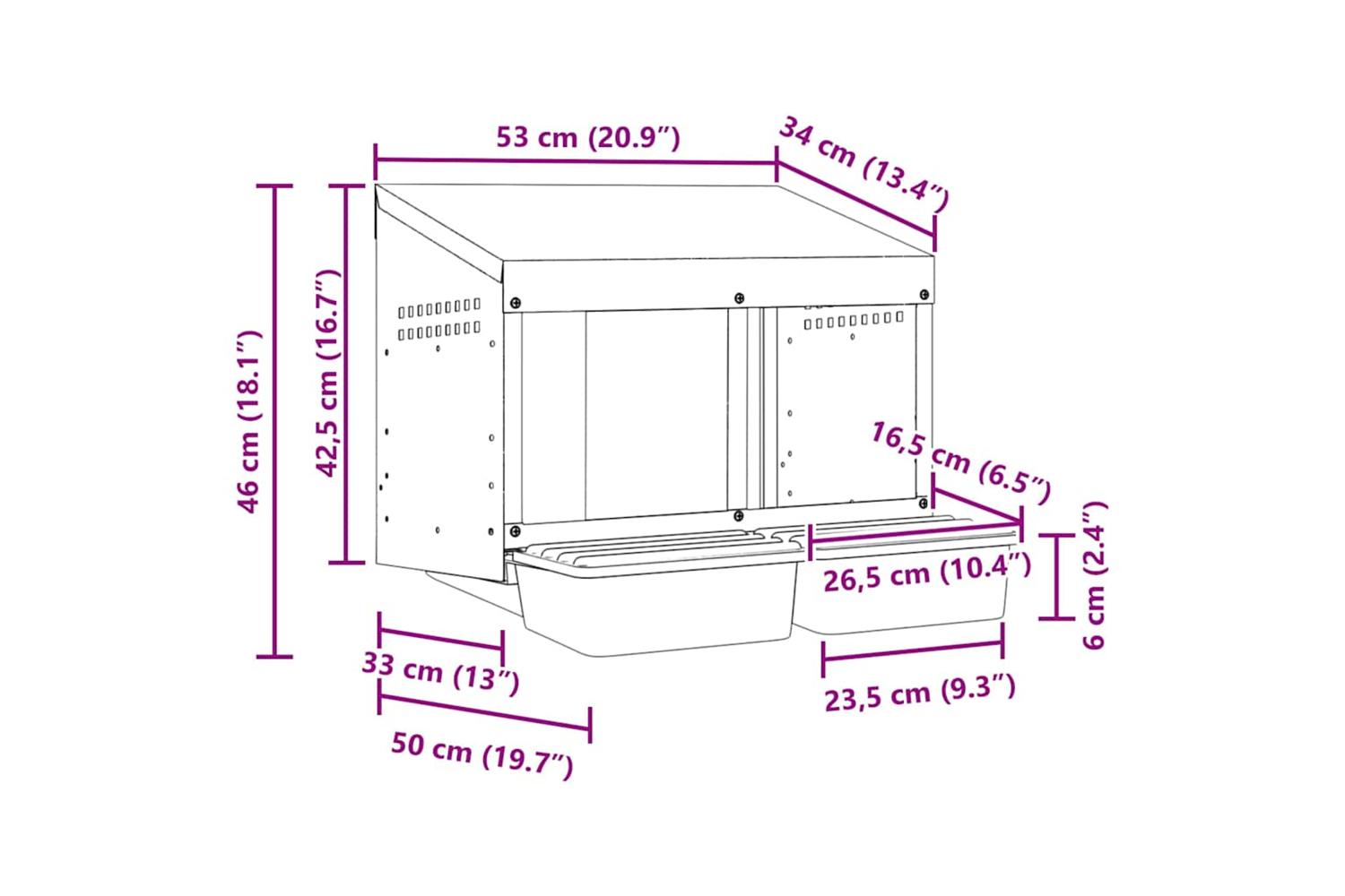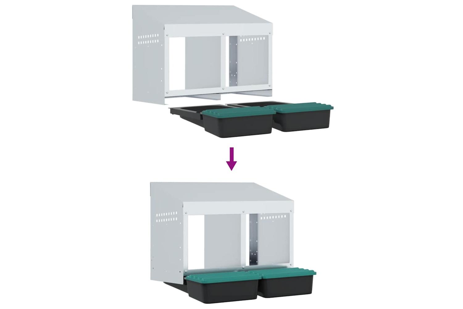 - Robust and durable material: Crafted from galvanised steel and sturdy polypropylene plastic, this nesting box is built to last, offering long-lasting performance and protection for your chickens against harsh outdoor conditions.