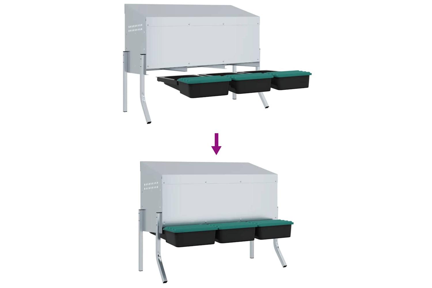 - Robust and durable material: Crafted from galvanised steel and sturdy polypropylene plastic, this nesting box is built to last, offering long-lasting performance and protection for your chickens against harsh outdoor conditions.
