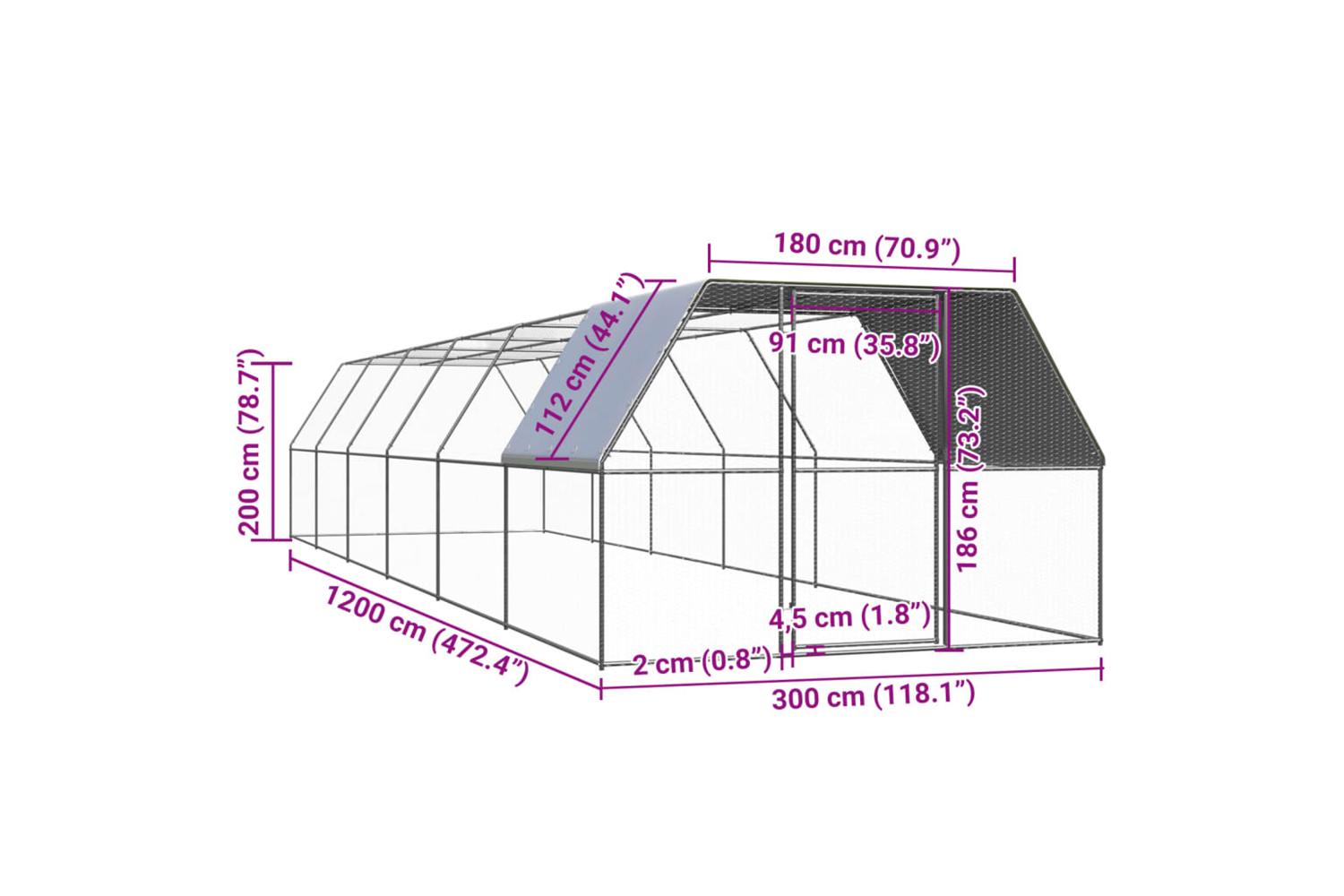 This chicken run is made of galvanised steel. It has a polyethylene roof that is water-resistant and UV-resistant. The gate is equipped with a lock, which ensures extra security and safety for your small animals.