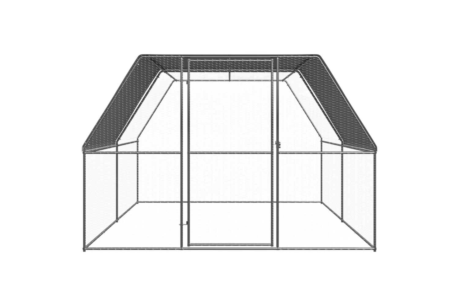 This chicken run is made of galvanised steel. It has a polyethylene roof that is water-resistant and UV-resistant. The gate is equipped with a lock, which ensures extra security and safety for your small animals.