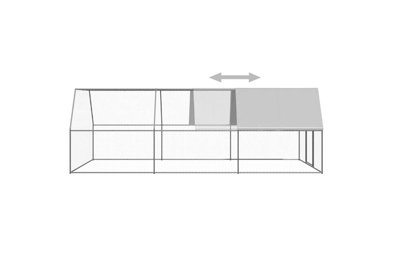 This chicken run is made of galvanised steel. It has a polyethylene roof that is water-resistant and UV-resistant. The gate is equipped with a lock, which ensures extra security and safety for your small animals.