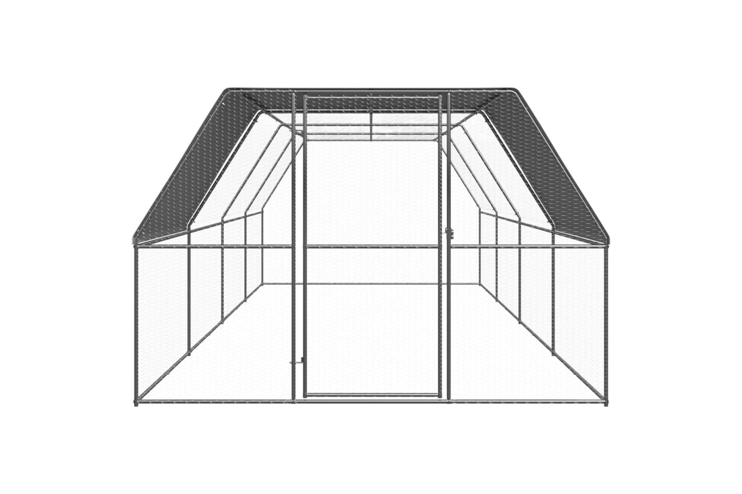 This chicken run is made of galvanised steel. It has a polyethylene roof that is water-resistant and UV-resistant. The gate is equipped with a lock, which ensures extra security and safety for your small animals.