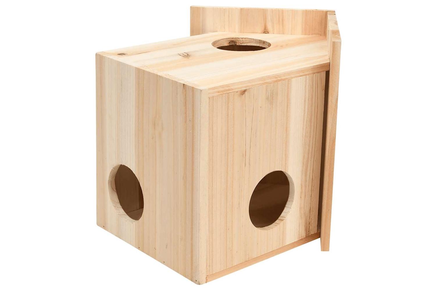 Constructed from high-quality fir wood, this house use uses thickly cut pieces to provide even greater insulation and protect from the elements, meaning that squirrels visiting will stay snug and safe. It has 3 entry holes with 7 cm in diameter for squirrels easily in and out. It's important that the squirrel house is placed about 3 or 4 meters from the ground and next to a branch, so a squirrel can escape easily in case of danger.