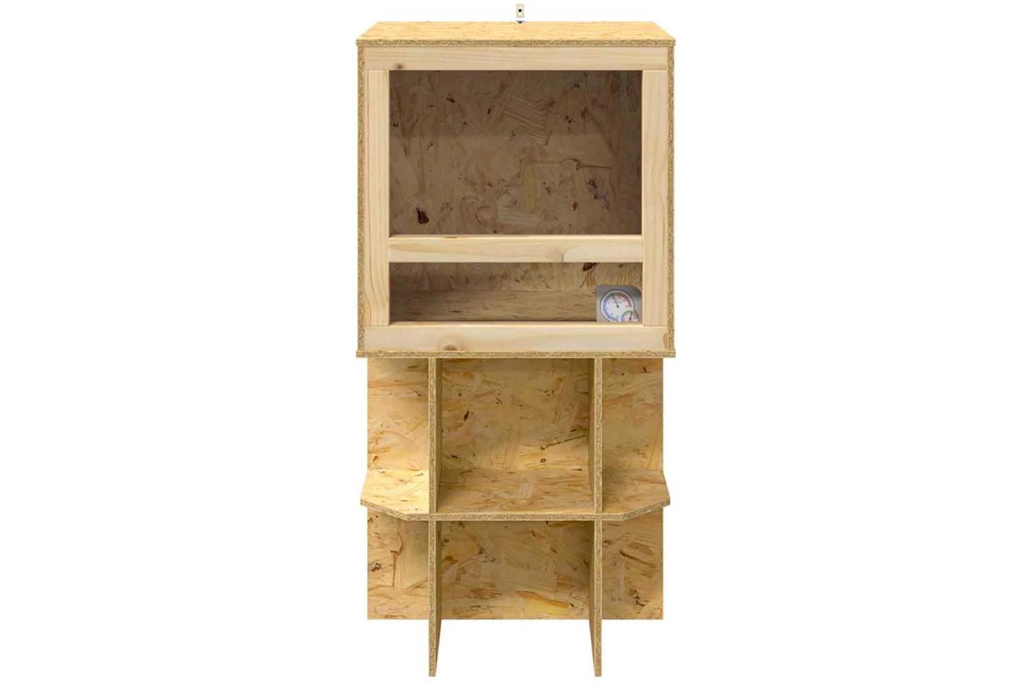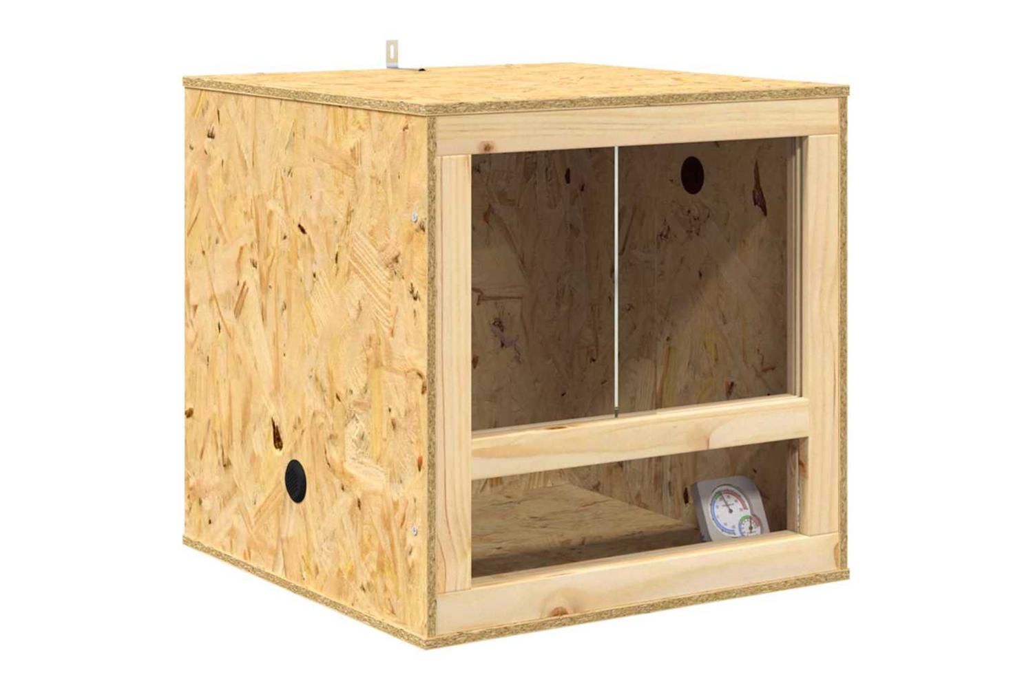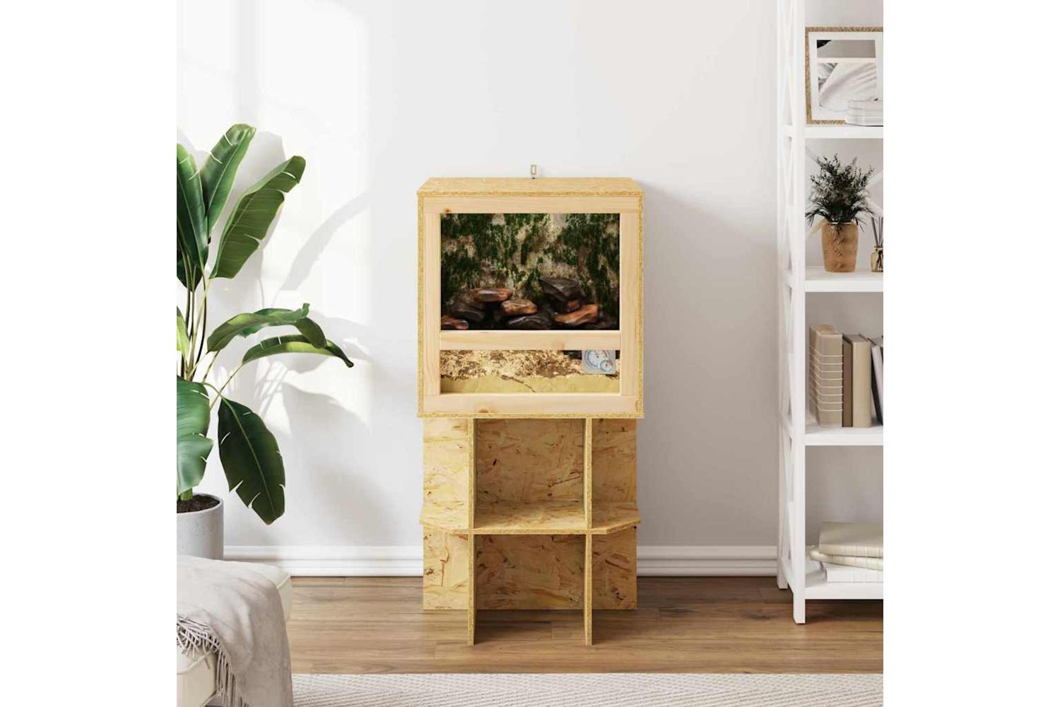 This OSB Terrarium is an enclosure crafted for reptile enthusiasts who prioritize both aesthetics and functionality. With its rustic charm, the terrarium showcases a natural, rugged beauty that fits seamlessly into any interior setting. It offers optimal space for your pets, making it a versatile habitat for reptiles or rodents. The square shape and matte finishes provide an understated elegance, setting a perfect stage for the natural habitats of your pets while enhancing your decor.