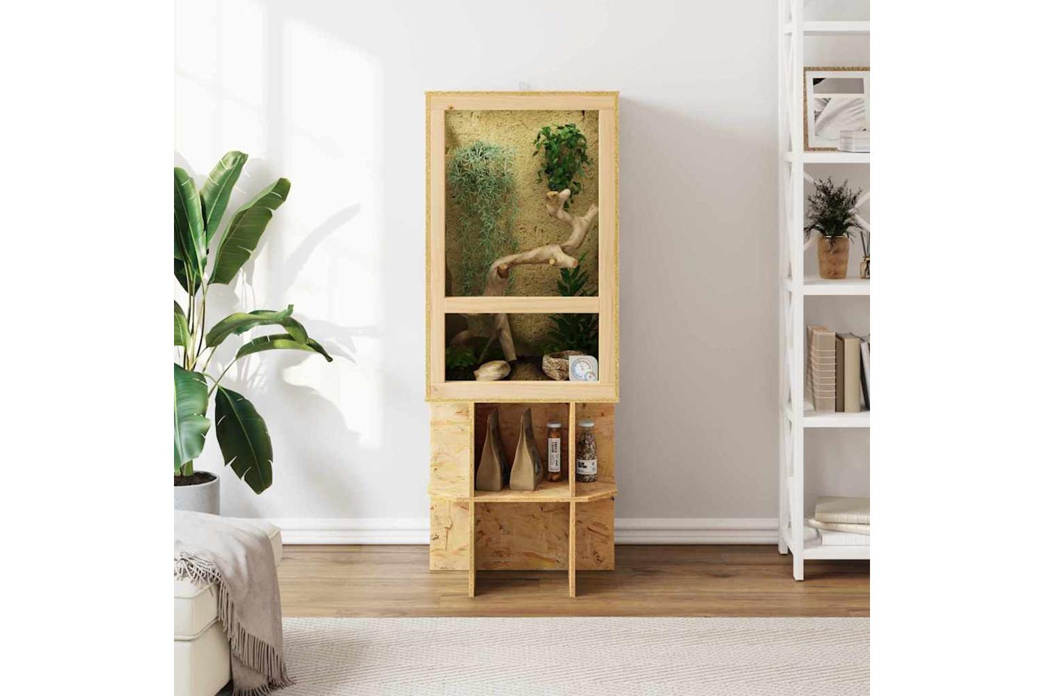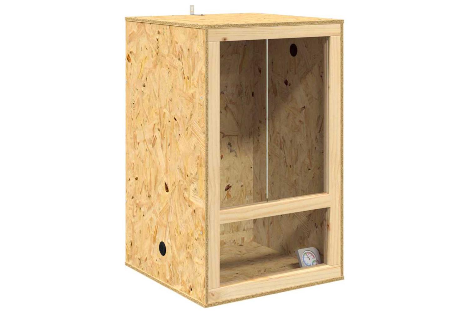 This OSB Terrarium is an enclosure crafted for reptile enthusiasts who prioritize both aesthetics and functionality. With its rustic charm, the terrarium showcases a natural, rugged beauty that fits seamlessly into any interior setting. It offers optimal space for your pets, making it a versatile habitat for reptiles or rodents. The square shape and matte finishes provide an understated elegance, setting a perfect stage for the natural habitats of your pets while enhancing your decor.