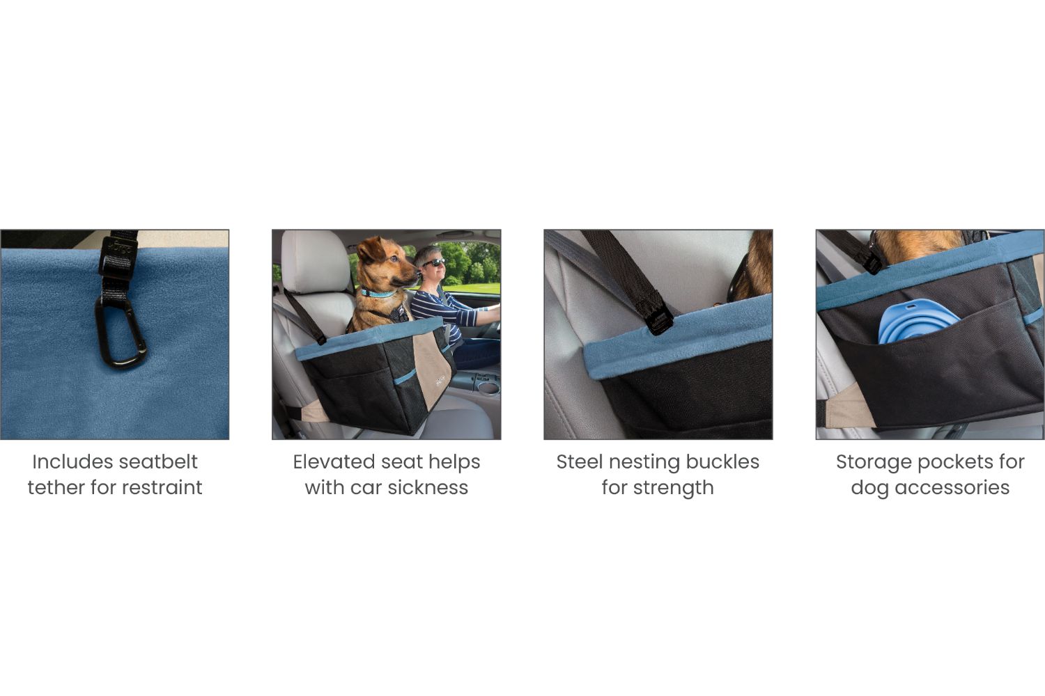 - Holds dogs up to 13.6 kg.Installs quickly and securely on any bucket seat