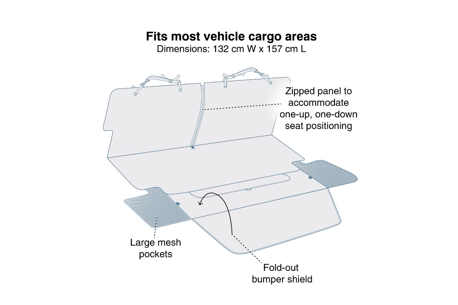 Your dog has plenty of ways to mess up your cargo area, but let's not blame it all on her. Fromtaking household waste to the recycling centre to picking up a container of geraniums, there are lots of things that can leave a mess. Keep things clean with our waterproof, stain-resistant Cargo Cape, with multiple attachment points to keep it from sliding around. But it literally doesn't end there-it comes with a unique fold-out flap to protect your bumper from superficial damage, like scratches, or denting from your powerful legs.