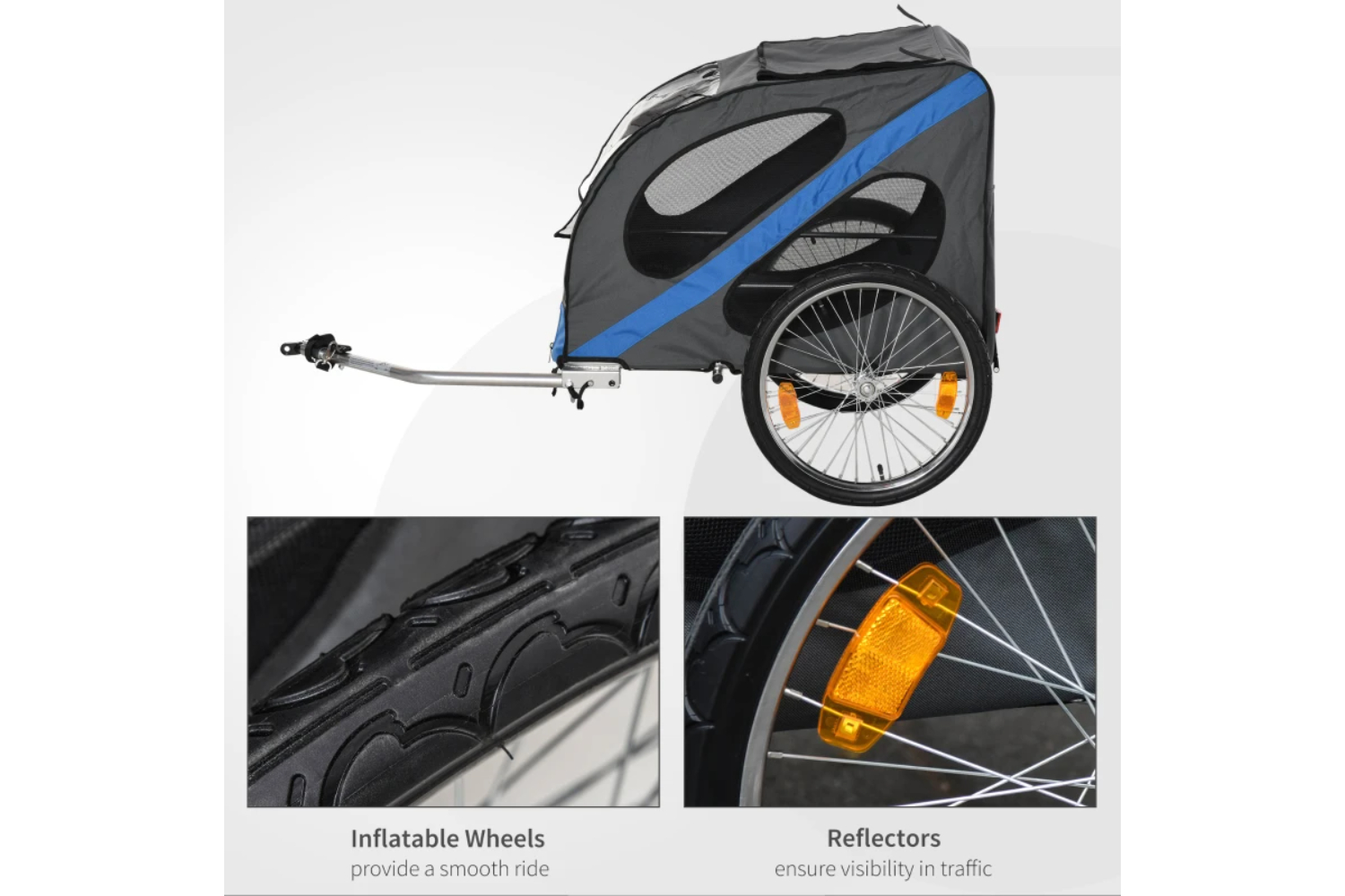 PawHut Dog Bike Trailer with Storage Bag | Grey/Blue is rated