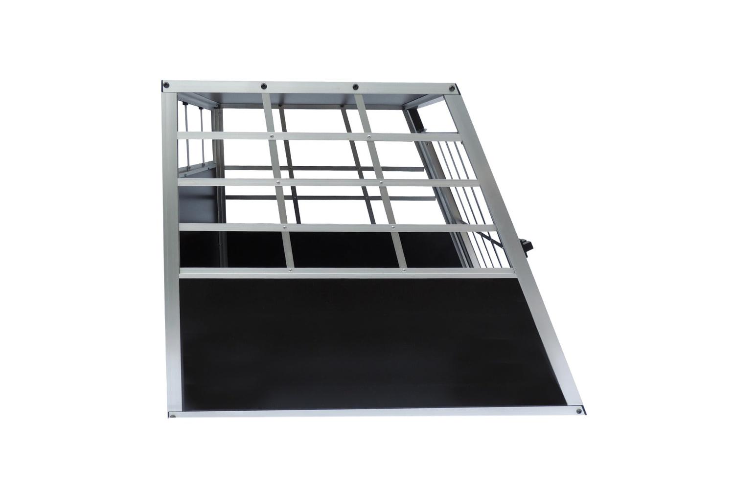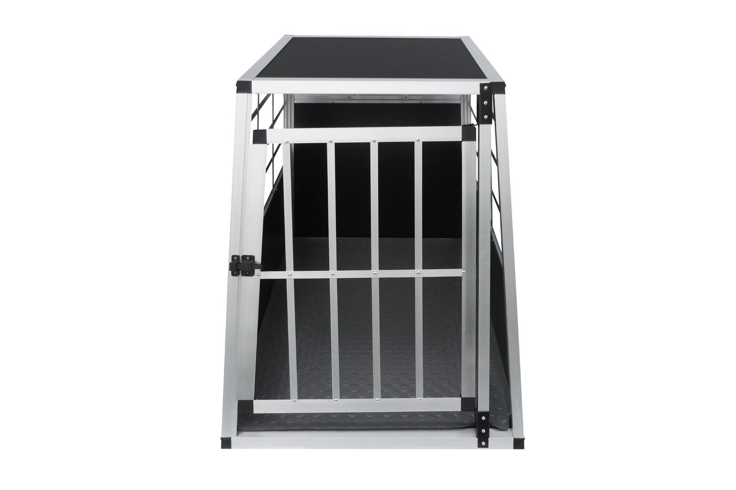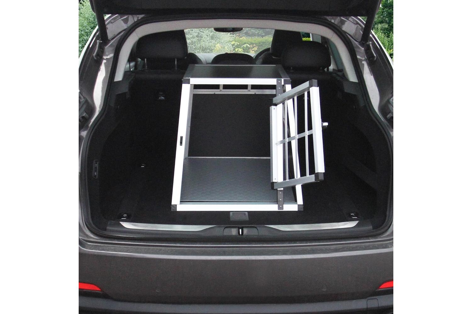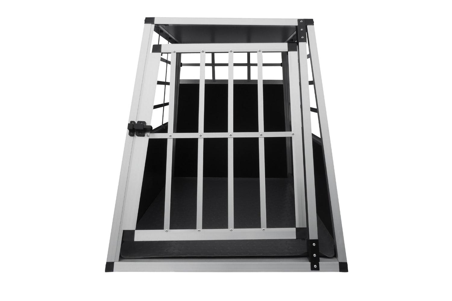 Elegantly crafted from durable aluminium, this pet crate serves as the state-of-the-art solution for travelling with your furry companions. Designed with a unique trapezoidal shape, it fits seamlessly into estate cars, leveraging storage space to optimize the in-car environment.