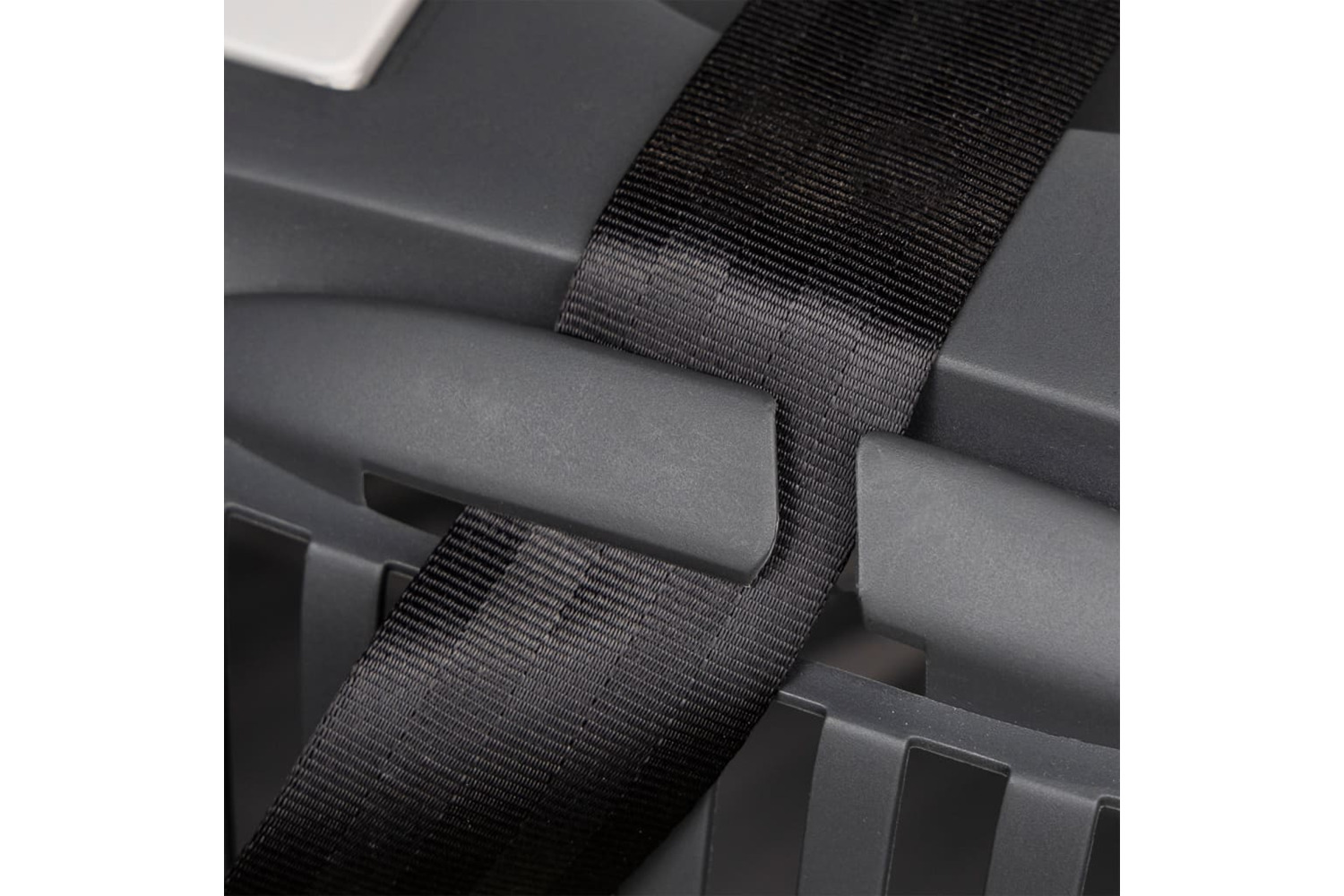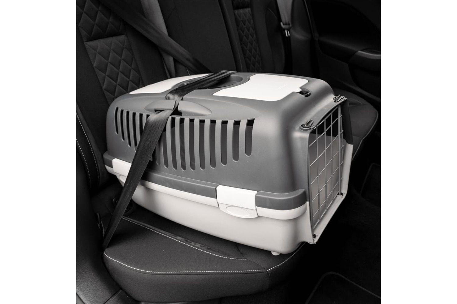 - Seat belt secure system: This transport box is provided with a practical seat belt secure system that allows you to safely transport your pet in the car.