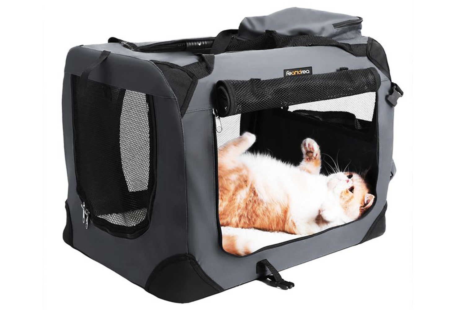 Thanks to the structure made of 600D oxford fabric, this transport box for pets is particularly stable and durable. It is also equipped with a mat made of synthetic fleece.