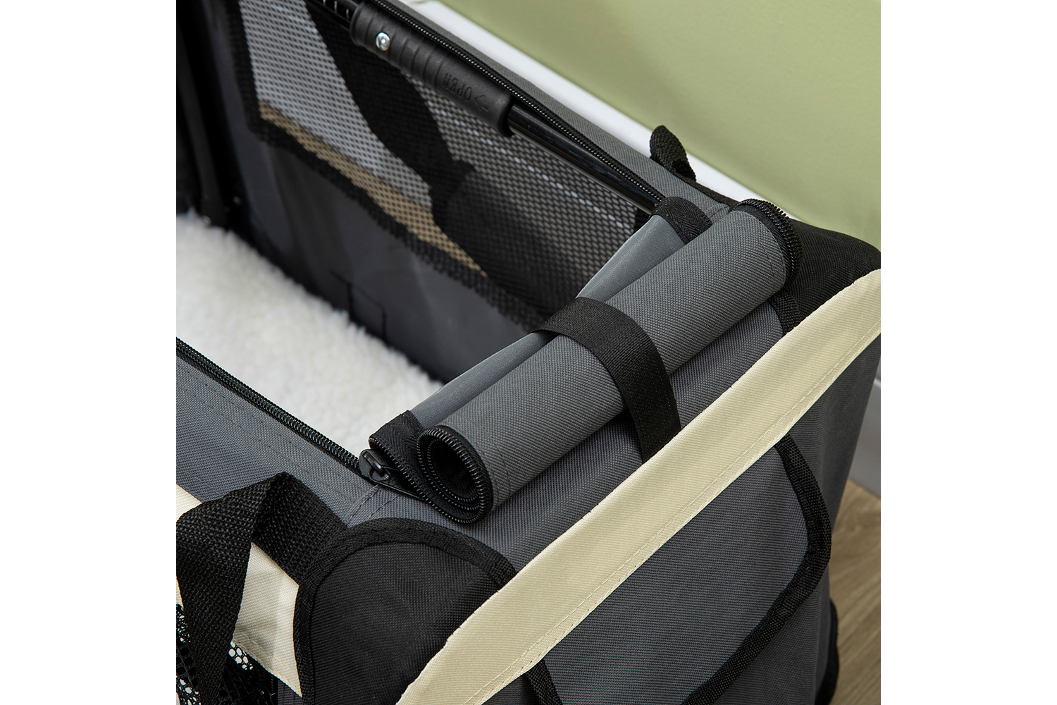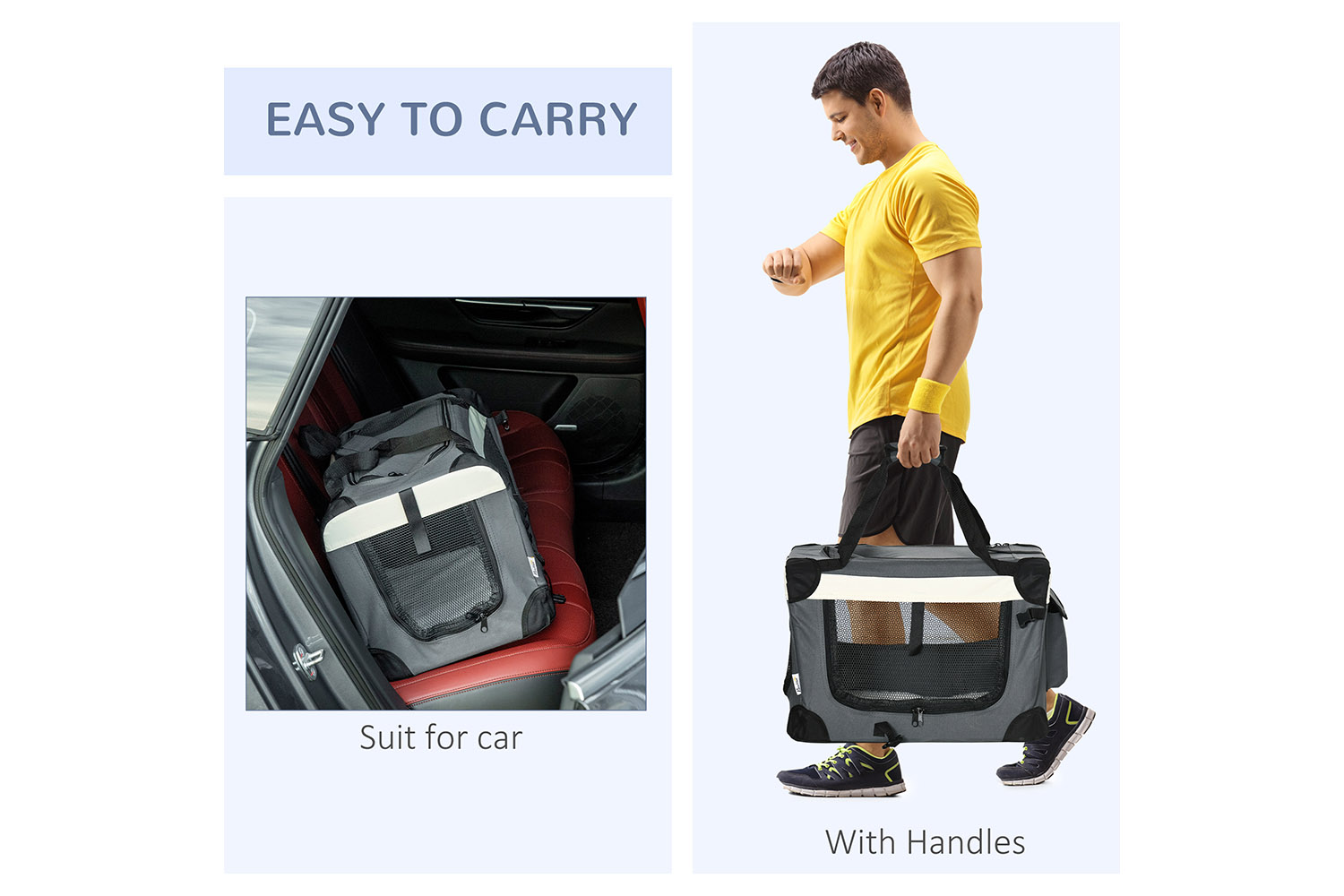 Struggle to travel with pets? With this PawHut pet carrier bag, you'll struggle no more. Its adjustable strap goes over your shoulder, so it's much easier carrying cats or miniature dogs. Three doors for easy access – they'll enter a spacious area, where they'll relax on a soft cushion, whilst the air flows through the mesh window to keep them cool. It's foldable and comes with a bag, saving space when stored away. Not just for travelling, it can be used at home – a place for pets to lounge.