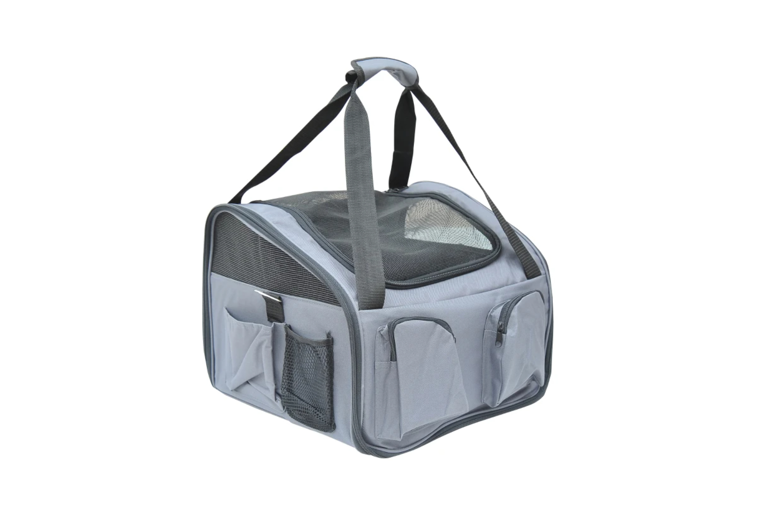 Pet booster car seat can be set up and fold flat in seconds Handles are available for carrying conveniently Fits front and back seats Zippered mesh top opening ensure better air ventilation zipper with double heads for smooth opening and close Front and side pockets can store pet food and toys A comfortable and safety area is provided for pets while traveling It is foldable and easy to store