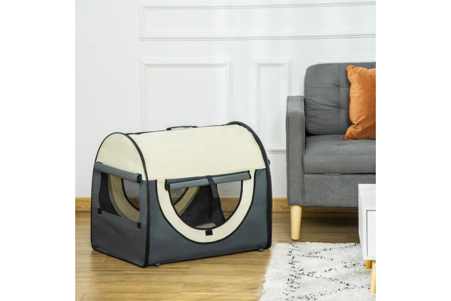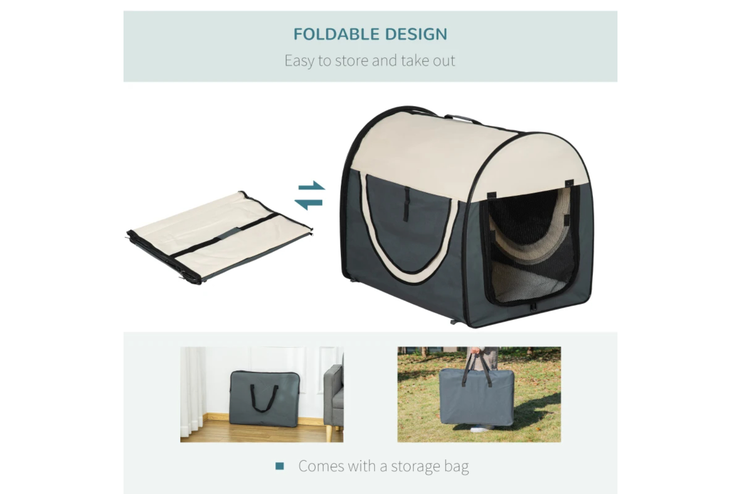 With this PawHut portable pet crate, you'll struggle no more if your pet is coming along with you for the ride. Featuring top handle makes it easier to carry. Zippered side door for easy access – they'll enter a spacious area, where they'll nestle in with a fluffy cushion, whilst the air flows through the mesh window to keep them cool. It's simple to fold, saving space when storing in the carrying bag. The soft pet carrier bag is a fantastic alternative to bulky hard-shell carriers.