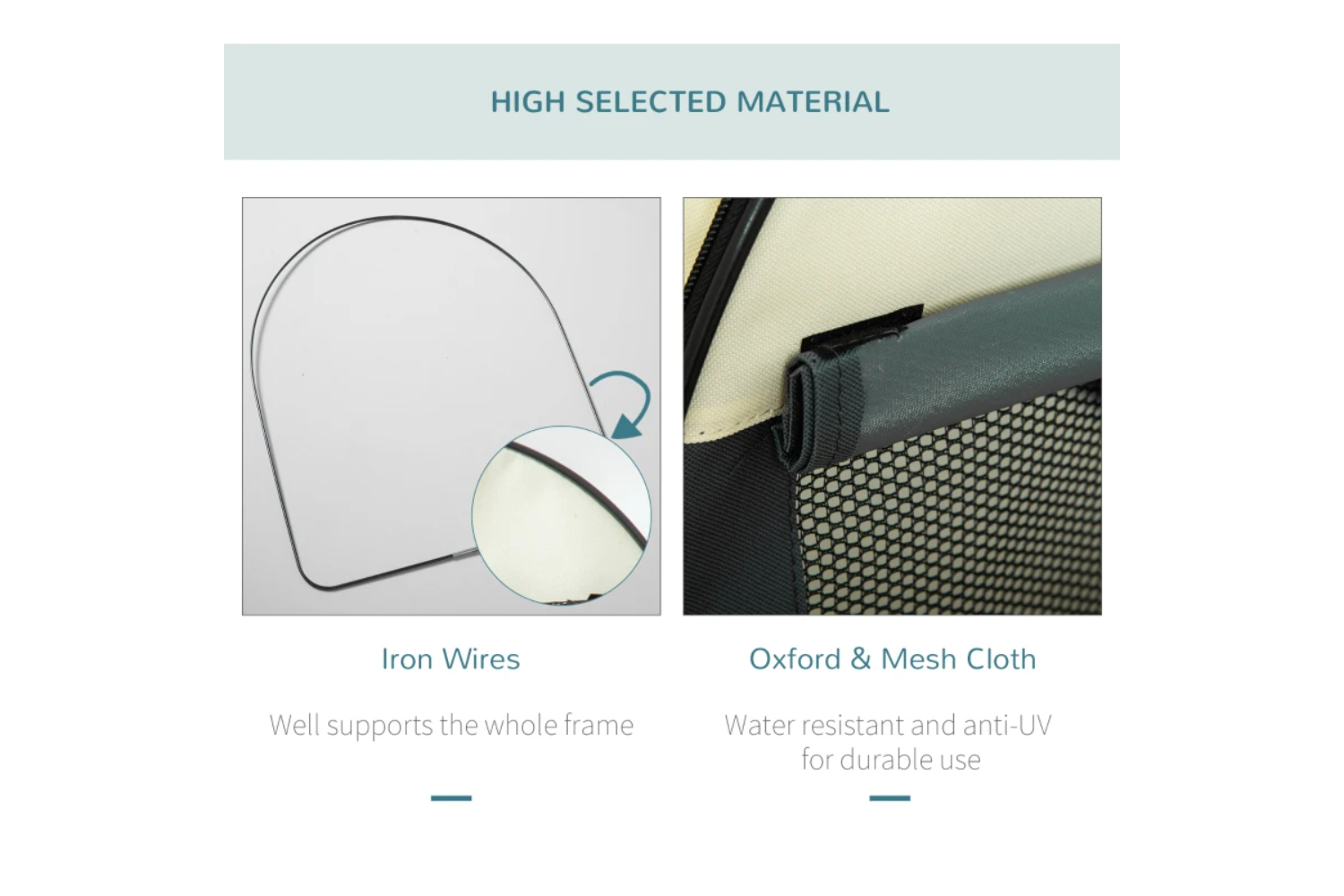 - Steel frame and pvc water-resistant coated oxford cloth for durability