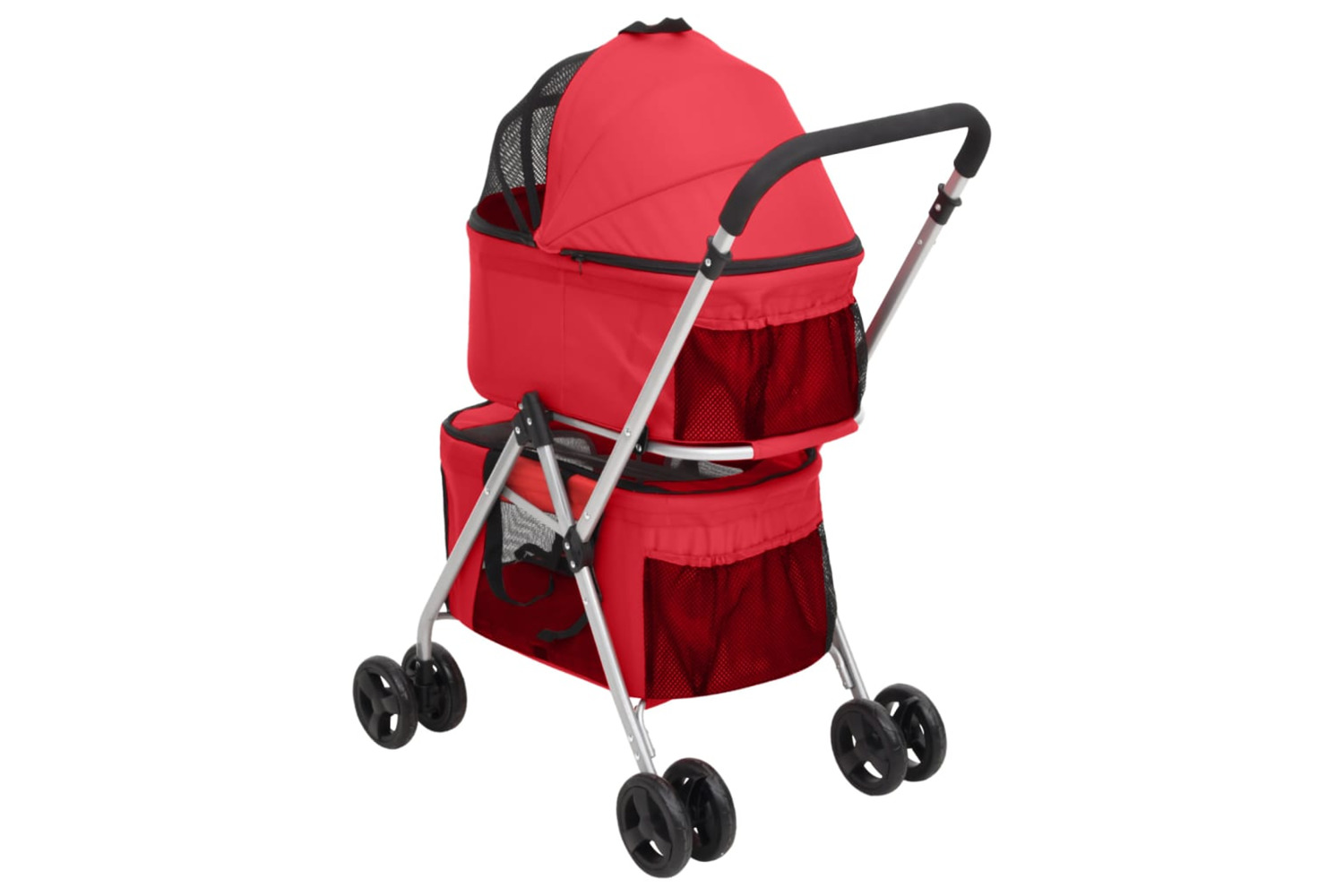 - Double-layered design: The puppy pram comes with 2 separate compartments that allow each animal to freely enjoy a clean space.