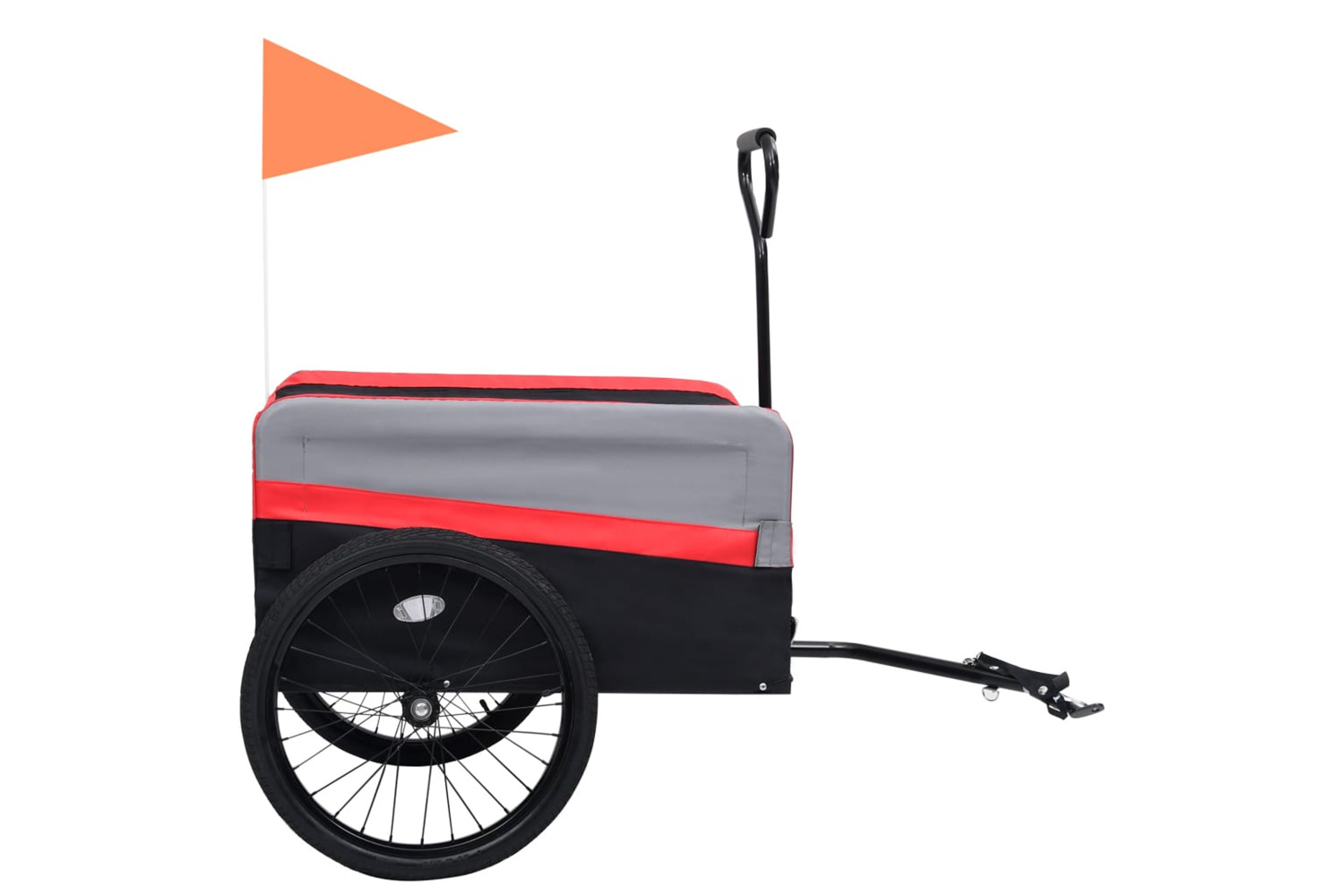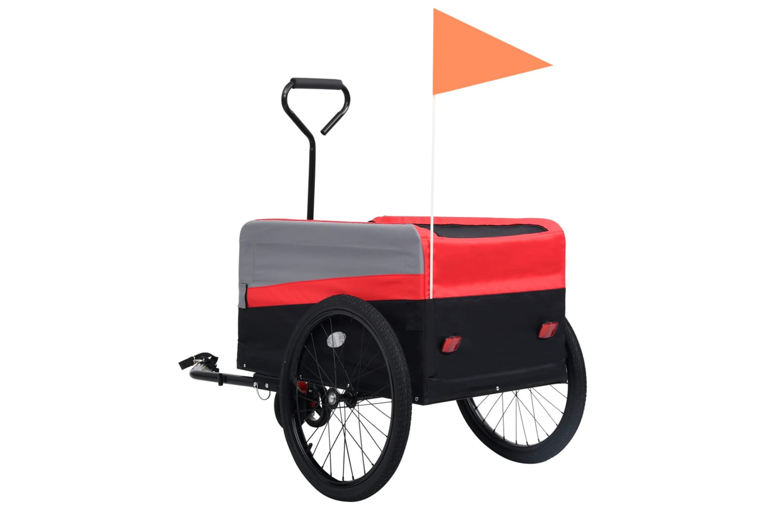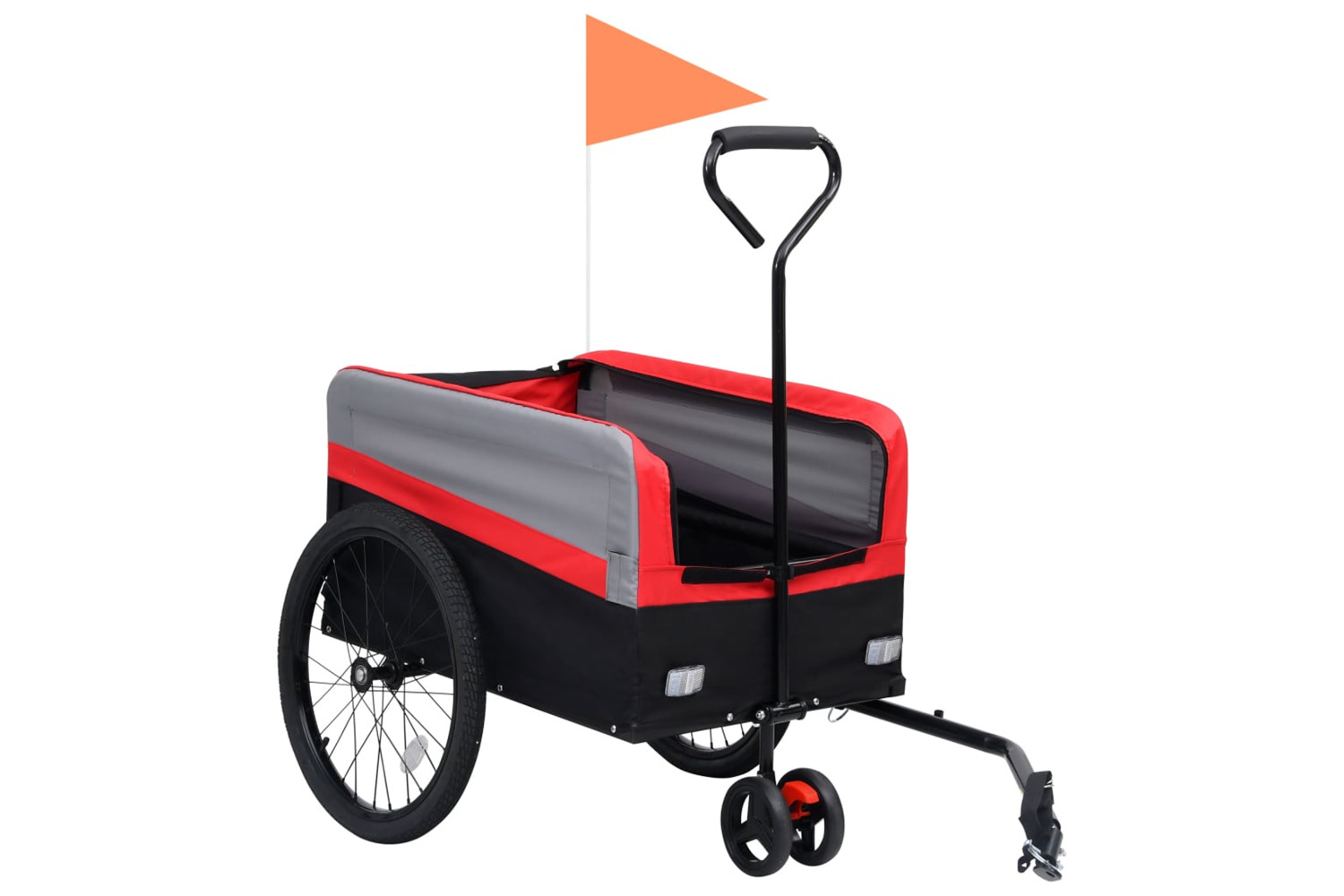 This functional 2-in-1 XXL pet bike trailer can be used as a trolley or a bicycle cart in seconds and is useful for hand carrying or connect to bicycle or vehicle.