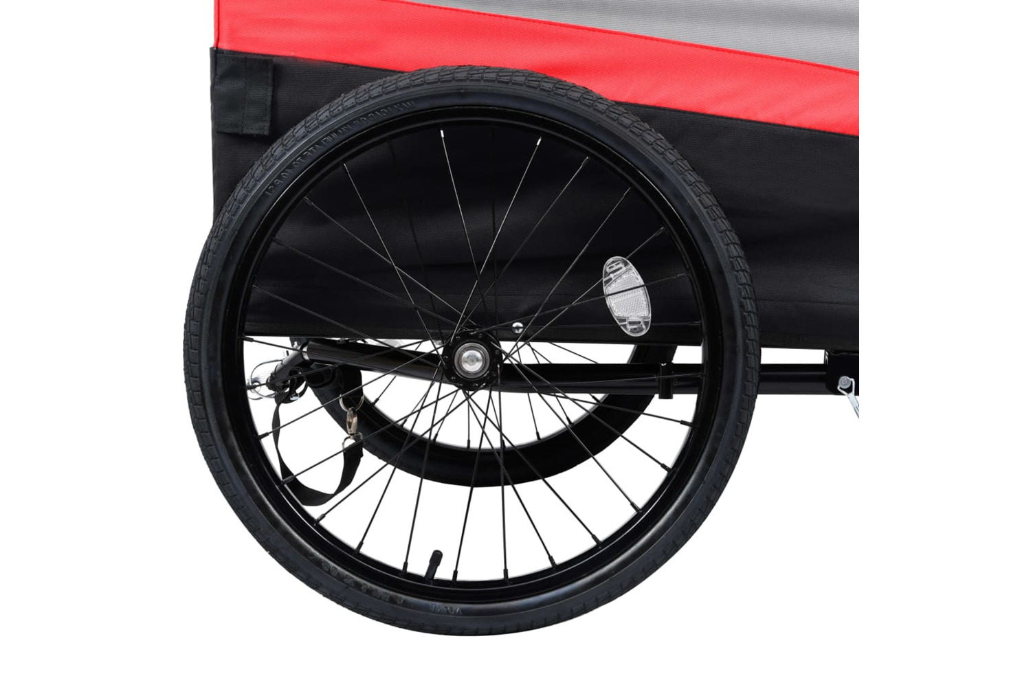 The cargo trailer has a sturdy steel frame and is made of oxford fabric, making it durable and easy to maintain. The trolley has a suspension for a smooth ride, and the front wheel can swivel 360 degrees for strolling. The safety rotating joint ensures that the trailer remains upright if the bicycle falls over. The cart has a quick release hitch for easy attachment to a bike or a vehicle. Additionally, it has a foldable structure for easy storage and transport.