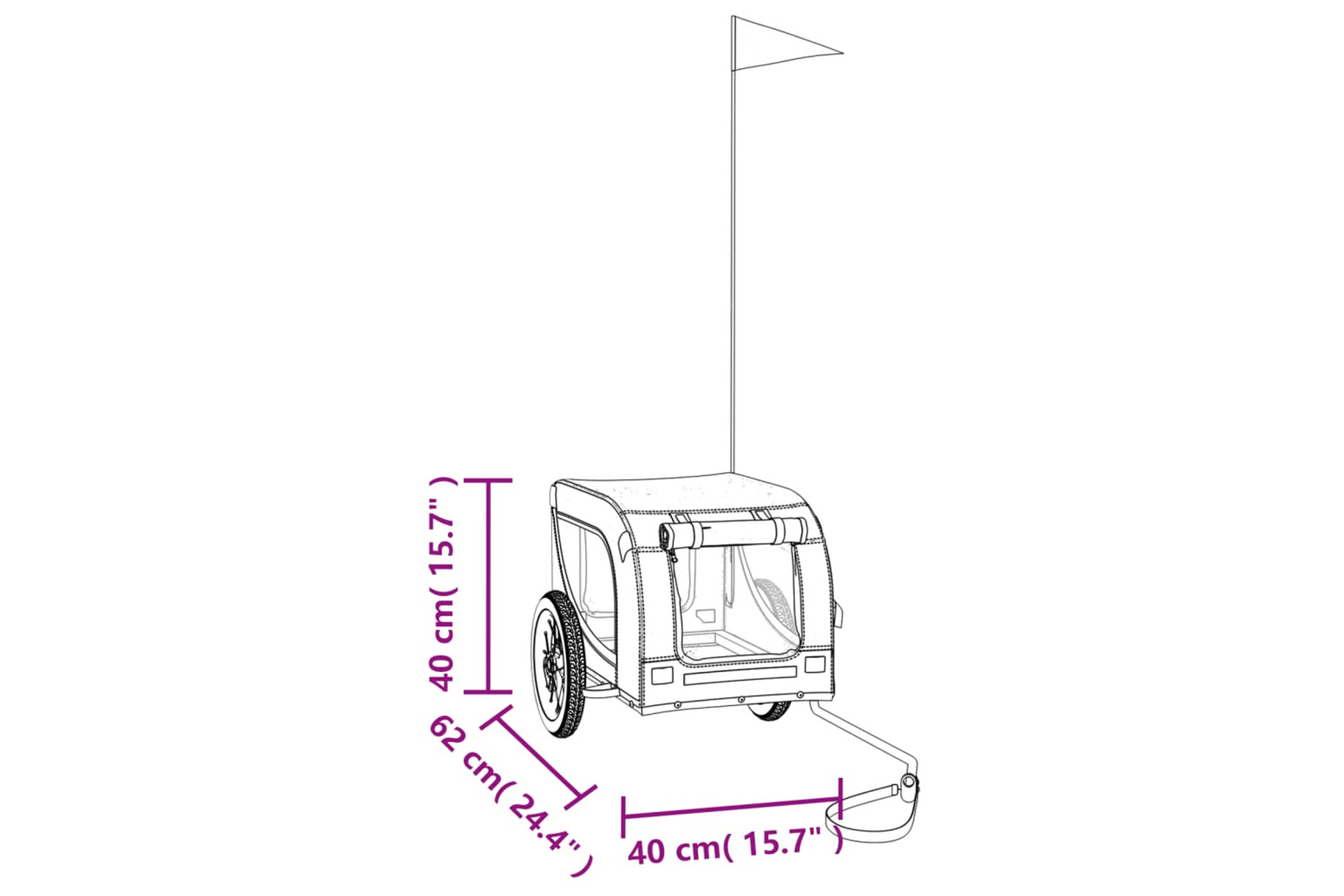 - Durable frame: Iron is a strong and hard material. It's a solid favourite in industrial and furniture construction. With a frame made of iron, the bicycle trailer is sturdy and reliable, giving you peace of mind when riding on the road.