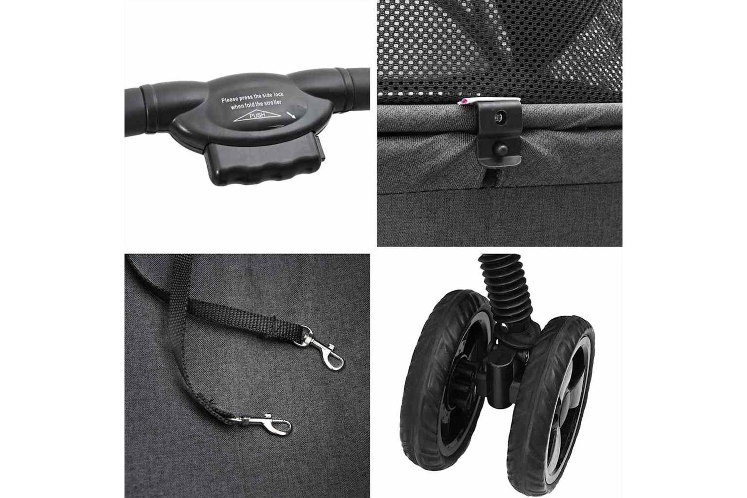 - Materials: Made primarily from polyester, this stroller is both resilient and lightweight, offering easy maneuverability. Its sturdy steel frame ensures structural integrity, while the polyester fabric is resistant to everyday wear and tear, making it perfect for regular use. The materials used in this stroller ensure durability, allowing pet owners peace of mind while on the go.