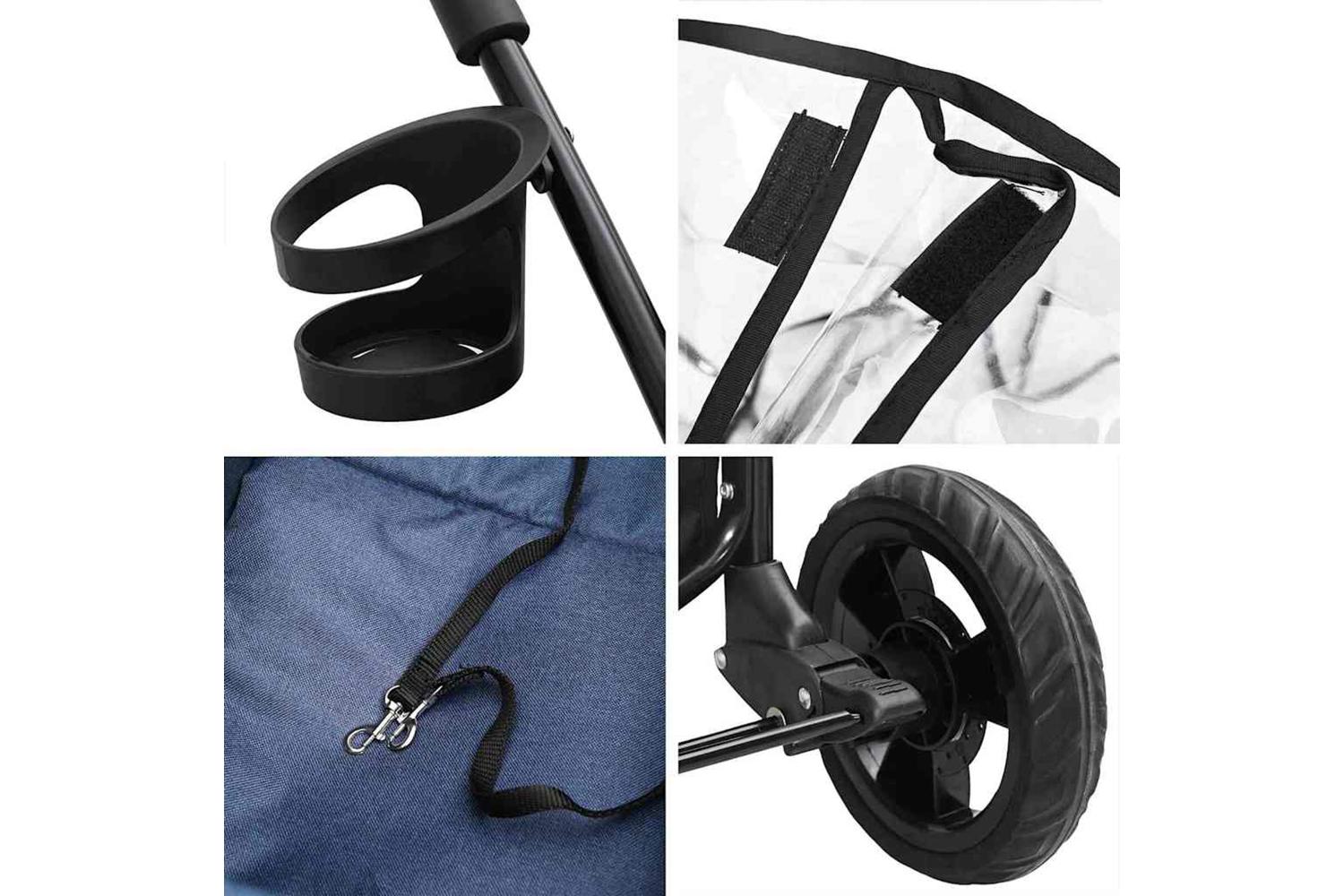 - Materials: Made primarily from polyester, this stroller is both resilient and lightweight, offering easy maneuverability. Its sturdy steel frame ensures structural integrity, while the polyester fabric is resistant to everyday wear and tear, making it perfect for regular use. The materials used in this stroller ensure durability, allowing pet owners peace of mind while on the go.
