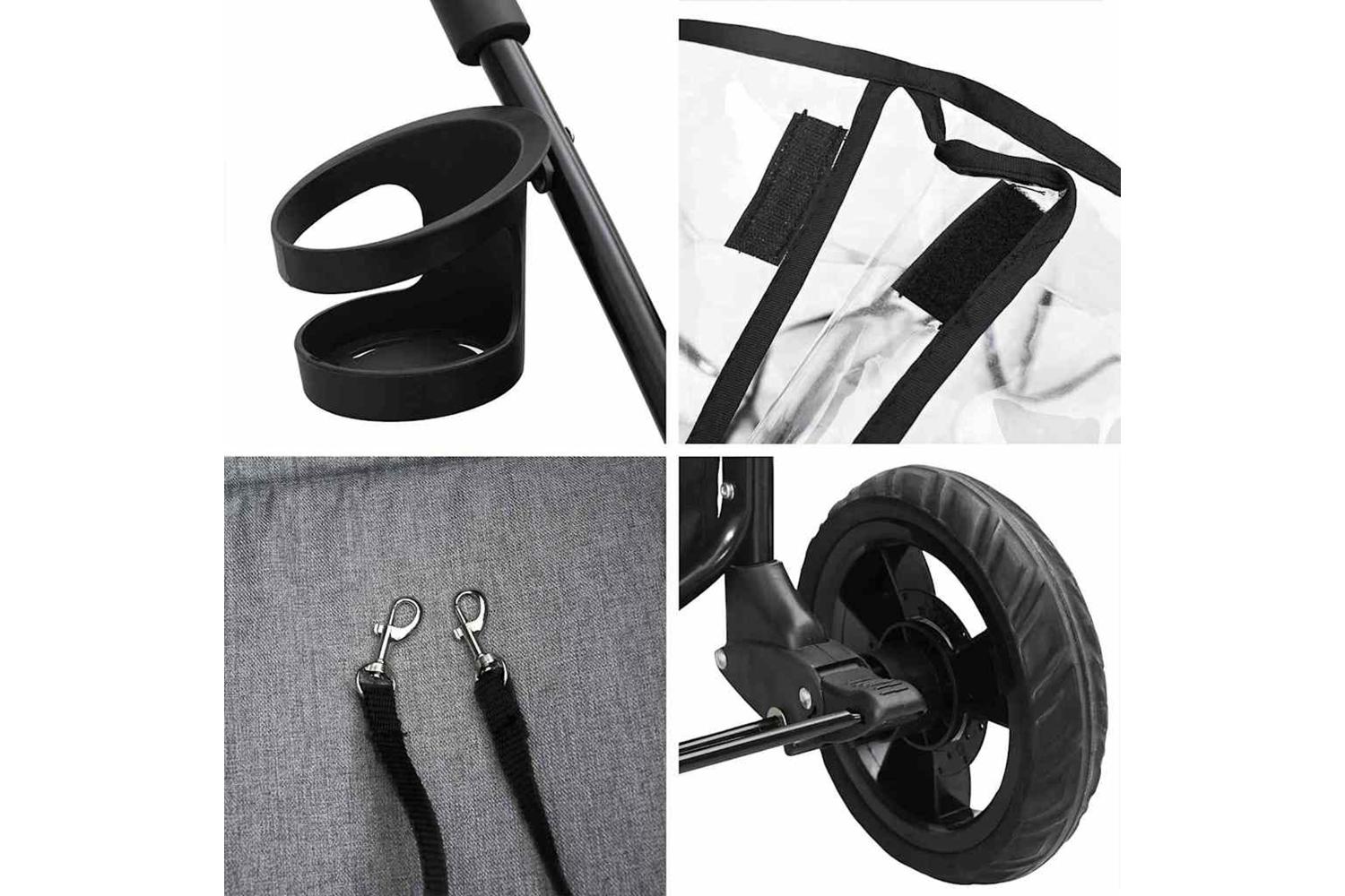 - Materials: Made primarily from polyester, this stroller is both resilient and lightweight, offering easy maneuverability. Its sturdy steel frame ensures structural integrity, while the polyester fabric is resistant to everyday wear and tear, making it perfect for regular use. The materials used in this stroller ensure durability, allowing pet owners peace of mind while on the go.