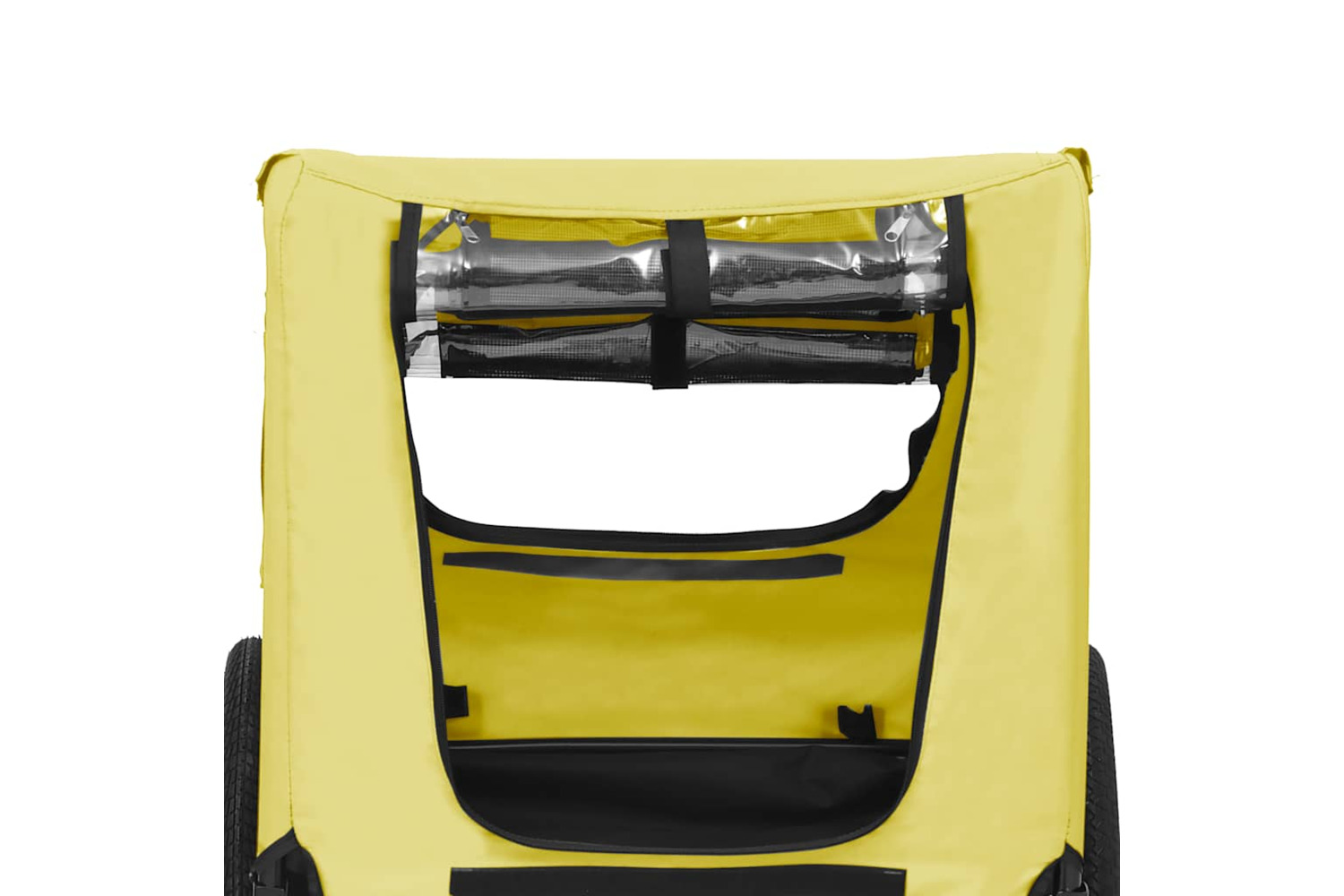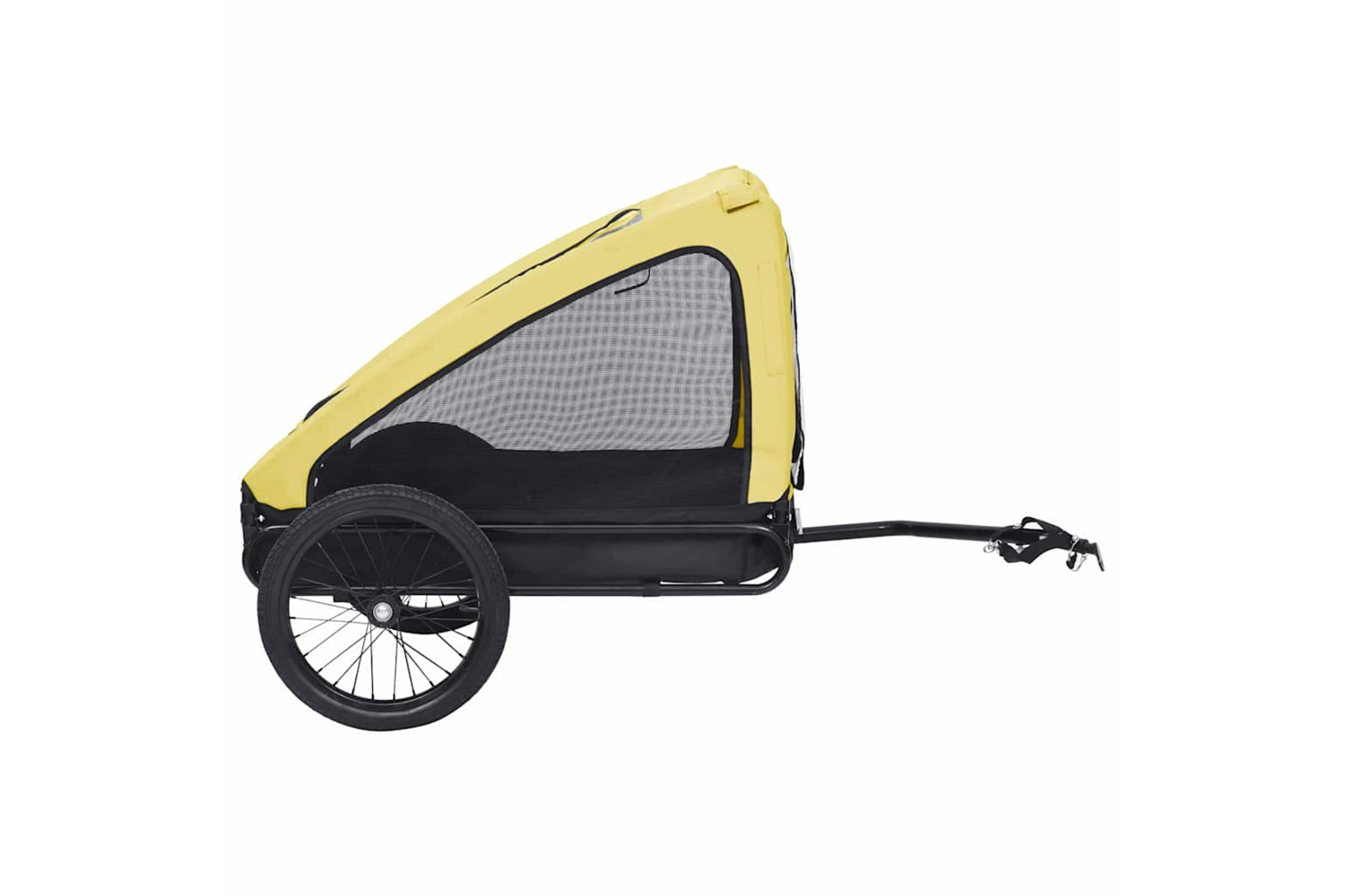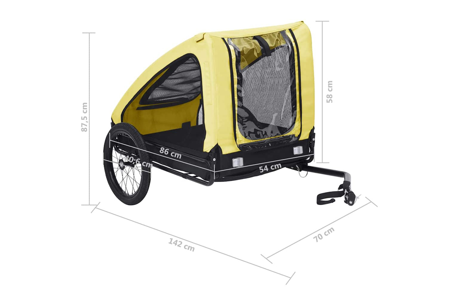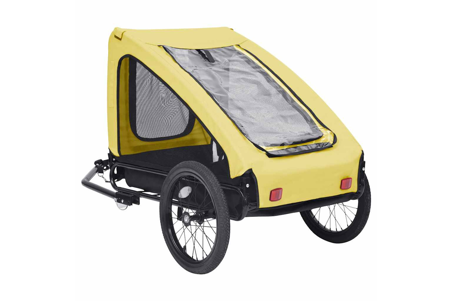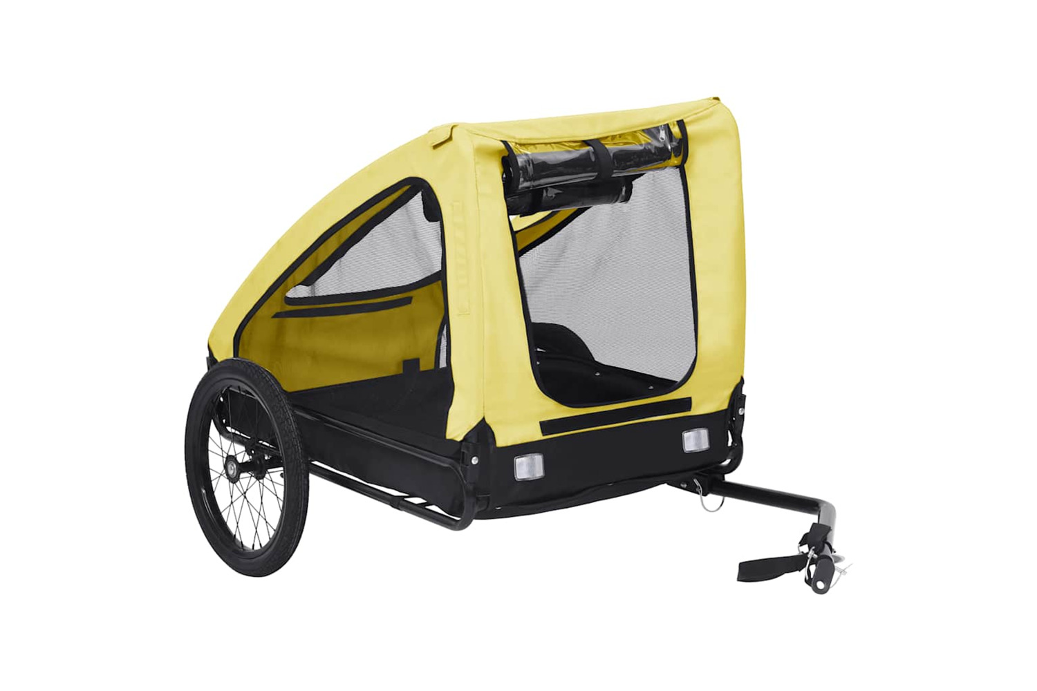 The pet carrier features a sturdy steel frame and is made of oxford fabric, making it durable and easy to maintain. Its mesh windows on both sides allow for maximum air circulation, while the front and back offer dual entry for added convenience. The reflectors on the wheel and back keep you and your pet visible to others. The pet bike carrier has a quick release hitch for easy attachment to a bike. Additionally, it can be folded to save space when not in use.