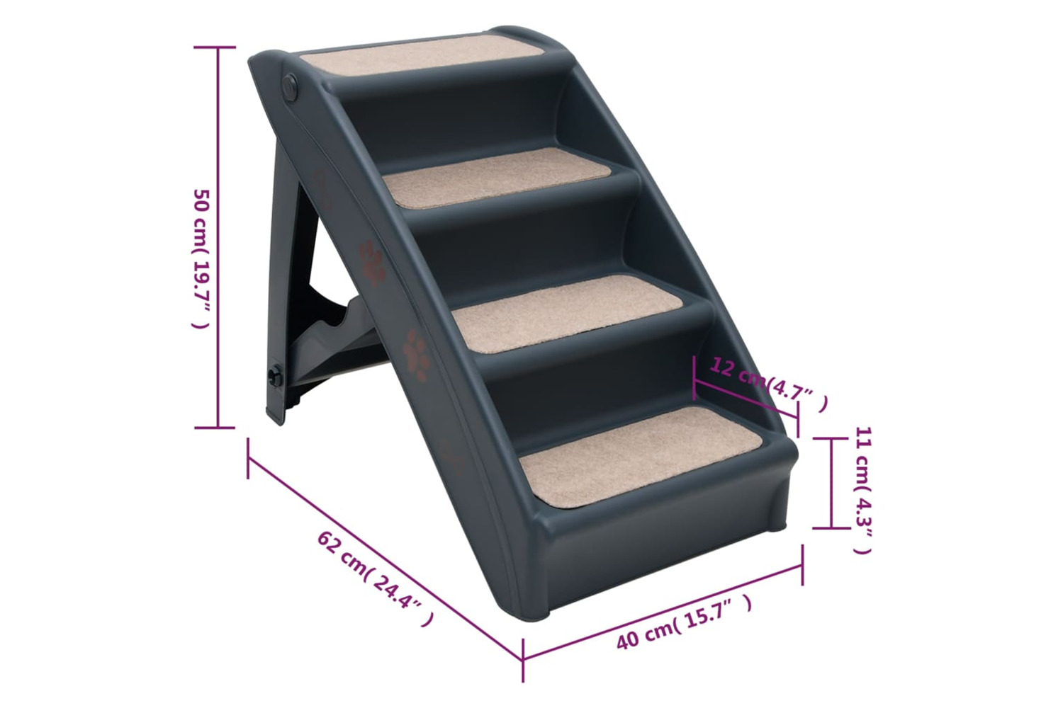 If your dog or cat is not tall enough to reach the bed or sofa, the folding pet stairs make it easier for the pet to get on top of the furniture. The pet steps, weighing only 2.02 kg, are easy to transport and can support up to 75 kg. Although lightweight, this pet step is sturdy and durable. Built-in safety side rails, felt covers and non-skid feet prevent the steps from sliding and your pet from slipping up and down the ladder while running climbing. You can fold the pet ladder and store it easily under a piece of furniture when not in use.