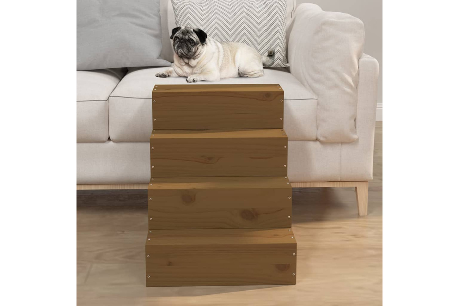 This wooden pet stair makes it easier for your pet to get up and down higher places.