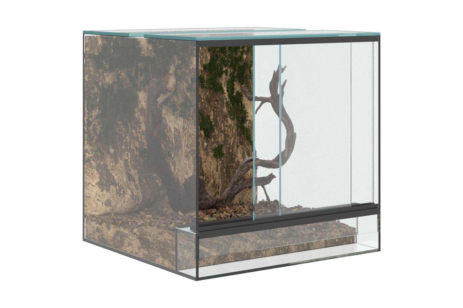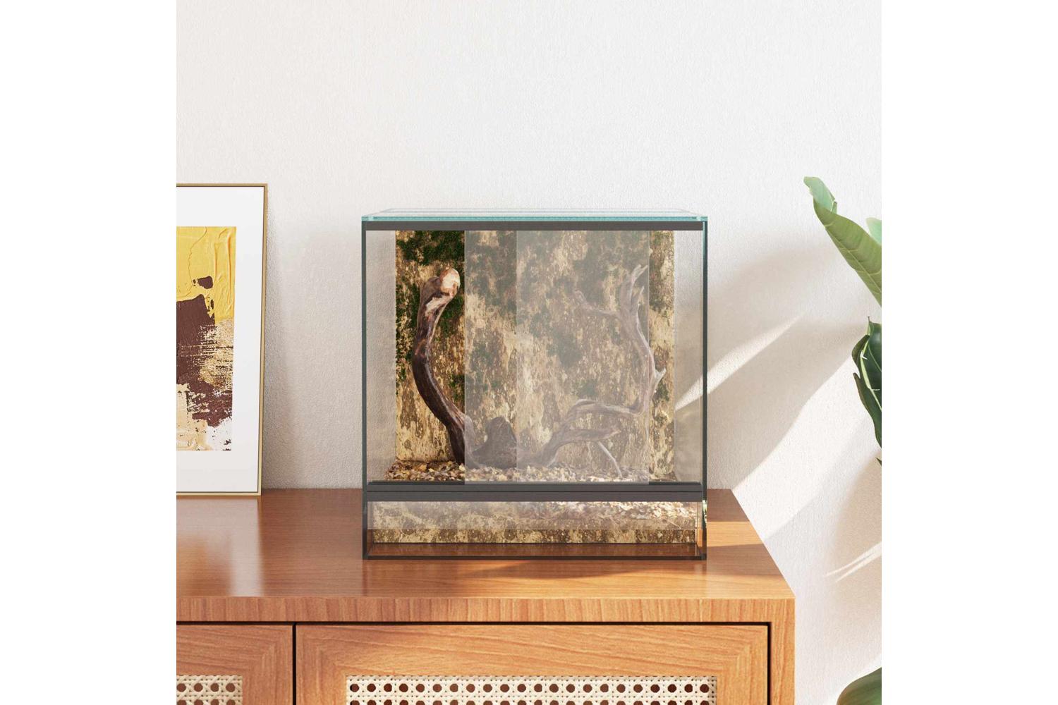 This Glass Reptile and Amphibian Habitat provides a refined setting for your pets, designed for their comfort and visibility. With its modern style, it fits seamlessly into both indoor and outdoor environments, offering an elegant look with its transparent glass material. The enclosure's smooth texture and clean lines make it a sophisticated addition to any space, providing a full view experience for pet owners who wish to observe their animals closely.