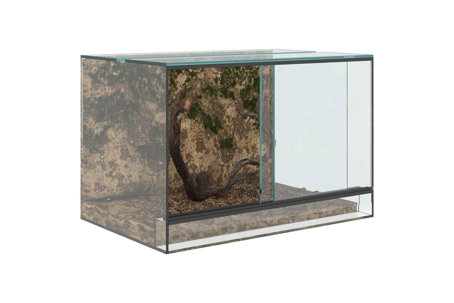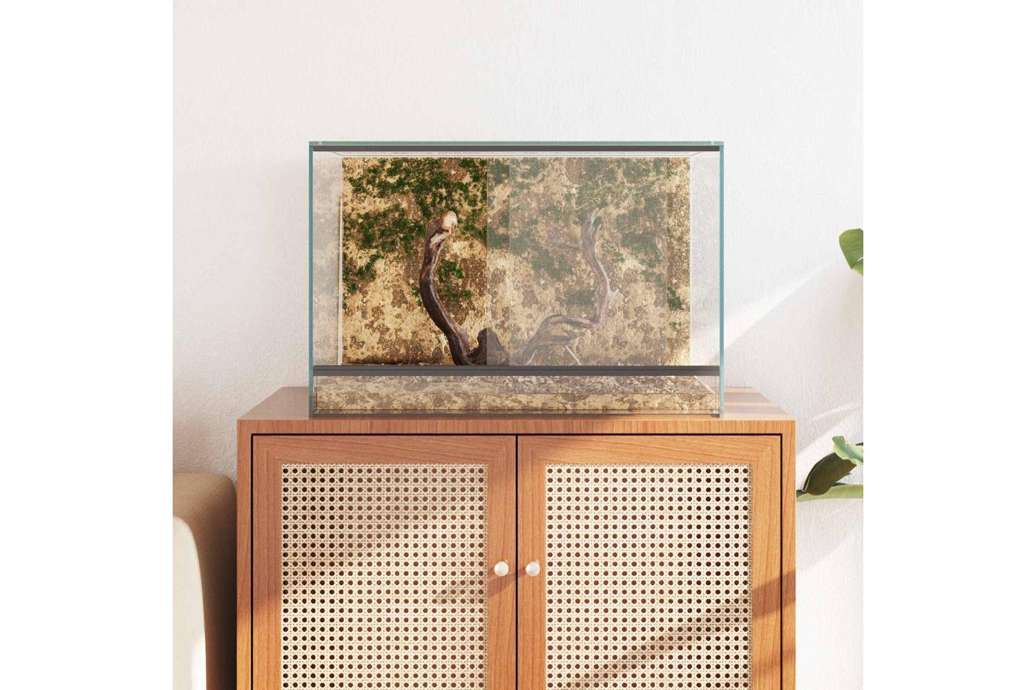 This Glass Reptile and Amphibian Habitat provides a refined setting for your pets, designed for their comfort and visibility. With its modern style, it fits seamlessly into both indoor and outdoor environments, offering an elegant look with its transparent glass material. The enclosure's smooth texture and clean lines make it a sophisticated addition to any space, providing a full view experience for pet owners who wish to observe their animals closely.